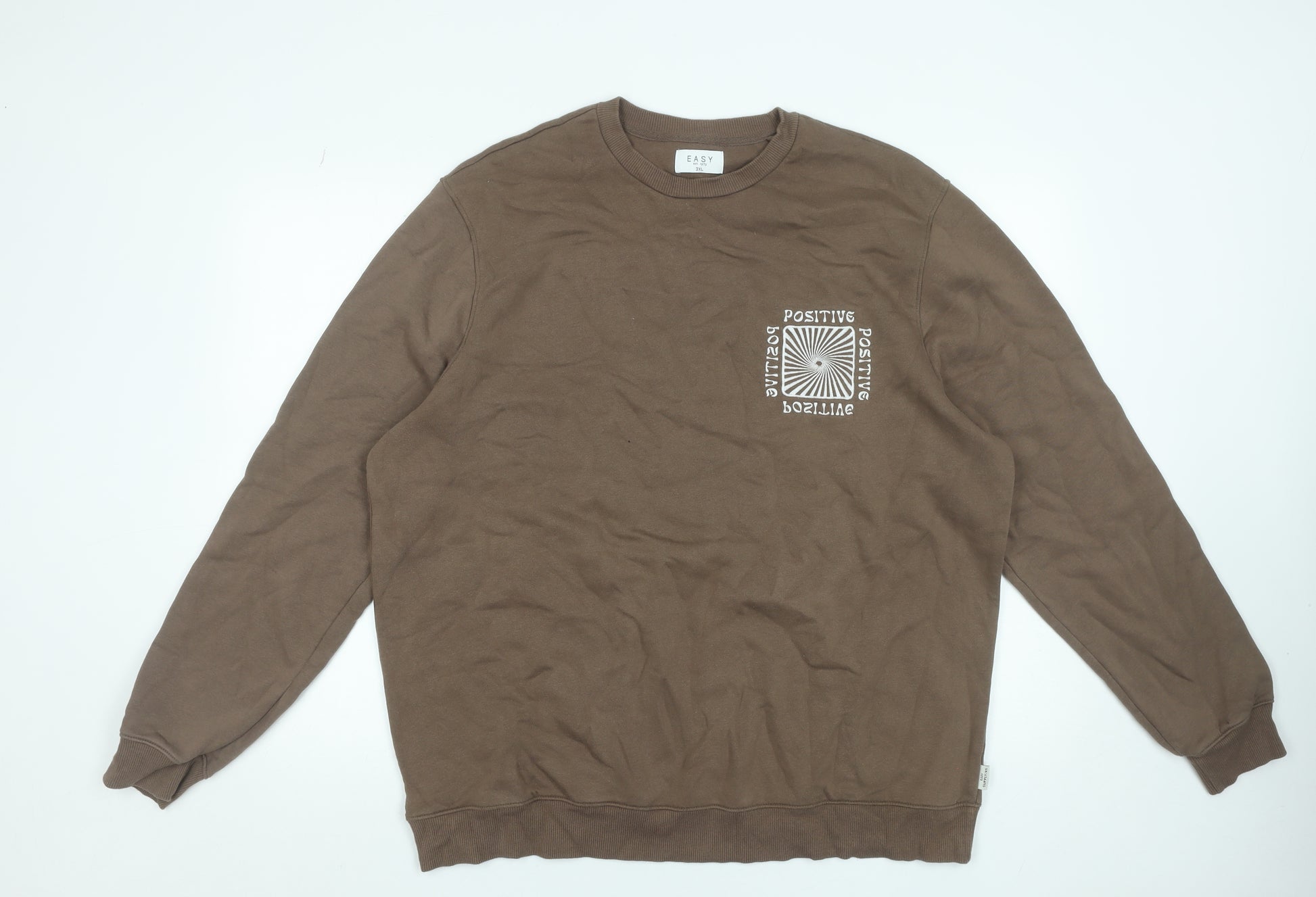 Add a touch of effortless comfort to your wardrobe with this warm brown sweatshirt from Easy. Crafted from a soft cotton blend fabric, it ensures a comfortable and breathable feel perfect for all seasons. The sweatshirt features a relaxed cut designed for everyday wear, allowing ease of movement and a casual yet stylish look. With its crew neckline and ribbed cuffs and hem, this piece maintains a timeless silhouette that is both flattering and versatile. On the chest, a graphic print displaying the word 'Positive' in a modern geometric design adds a fun and uplifting detail that elevates this classic sweatshirt style. Ideal for layering over leggings or jeans, this sweatshirt is a great choice for lounging, casual outings, or travel. Its durable cotton-polyester composition provides easy-care convenience and dependable wear, wash after wash. This piece embodies both comfort and casual sophistication, making it a staple addition to any relaxed wardrobe. Perfect for women, teens, or unisex adults who appreciate simple, well-made garments with understated style. Whether you’re running errands, heading to the gym, or relaxing at home, this Easy sweatshirt brings functional design and stylish comfort together seamlessly.