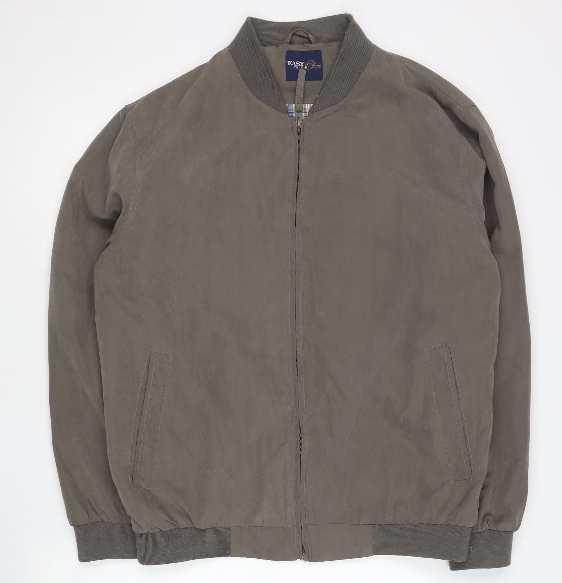 This Easy Classic men’s bomber jacket offers a timeless design with effortless versatility, making it a must-have addition to any casual wardrobe. Designed in a rich brown shade, the jacket delivers a clean and understated look that makes it easy to pair with virtually any outfit. Constructed from a durable outer shell made of 82% polyester and 18% polyamide, it strikes the perfect balance between comfort and resilience. The lining is composed of 100% polyester, offering a smooth, lightweight feel ideal for transitional weather during autumn and spring. The bomber design features a stand-up ribbed collar, ribbed hem, and cuffed sleeves, creating a snug fit that not only looks stylish but also adds functionality by locking in warmth. A full front zip closure enhances the jacket’s ease of wear, while two practical front welt pockets provide space for essentials or simply a spot to keep your hands warm in cooler conditions. With its classic zip-up fastening and lined interior, this jacket combines sleek practicality with everyday comfort. The short length makes it modern and versatile, suitable for laid-back weekends, casual outings, or for layering over a t-shirt or shirt for an effortlessly smart finish. Its simple and versatile pattern-free design ensures it remains a wardrobe staple for years to come. Condition is very good, with only minimal light wear and no major flaws, making this a solid option for someone who values quality at an affordable price. Easy to care for and machine washable, this jacket is designed for everyday wear without the hassle of special maintenance. Pair it with jeans and trainers for a relaxed day look, or layer over chinos for a slightly more polished finish – this bomber jacket adapts effortlessly to your lifestyle. A great value for anyone looking for a reliable and stylish jacket suitable for casual everyday use.