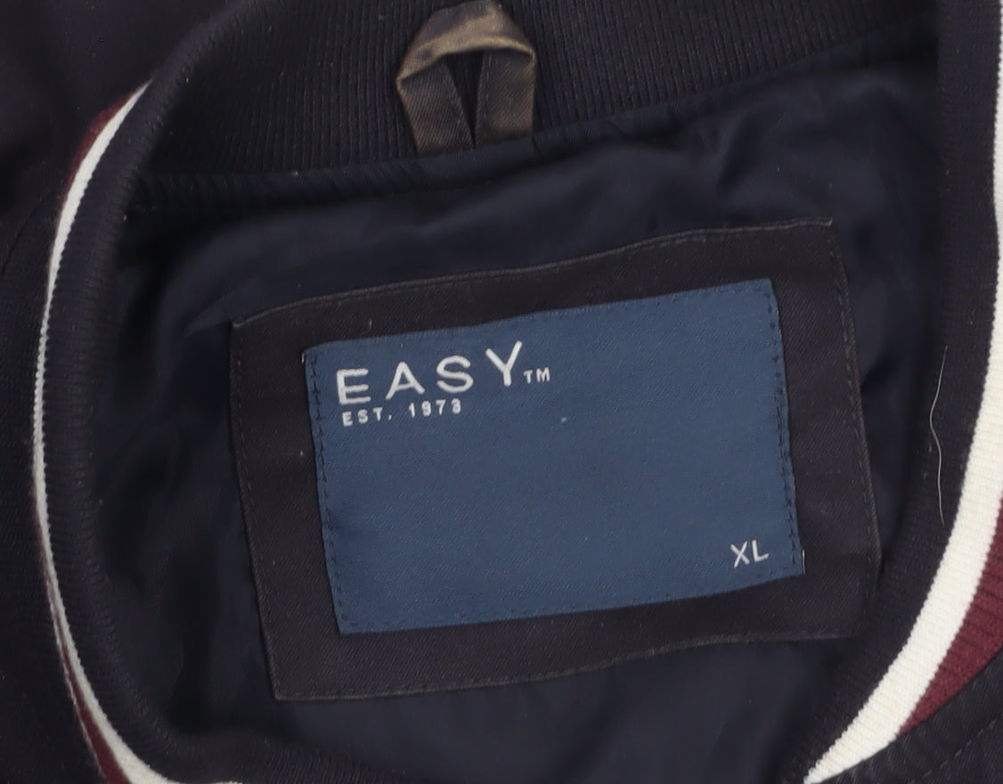 EASY Mens Blue Bomber Jacket XL Full Zip Casual Cotton Blend