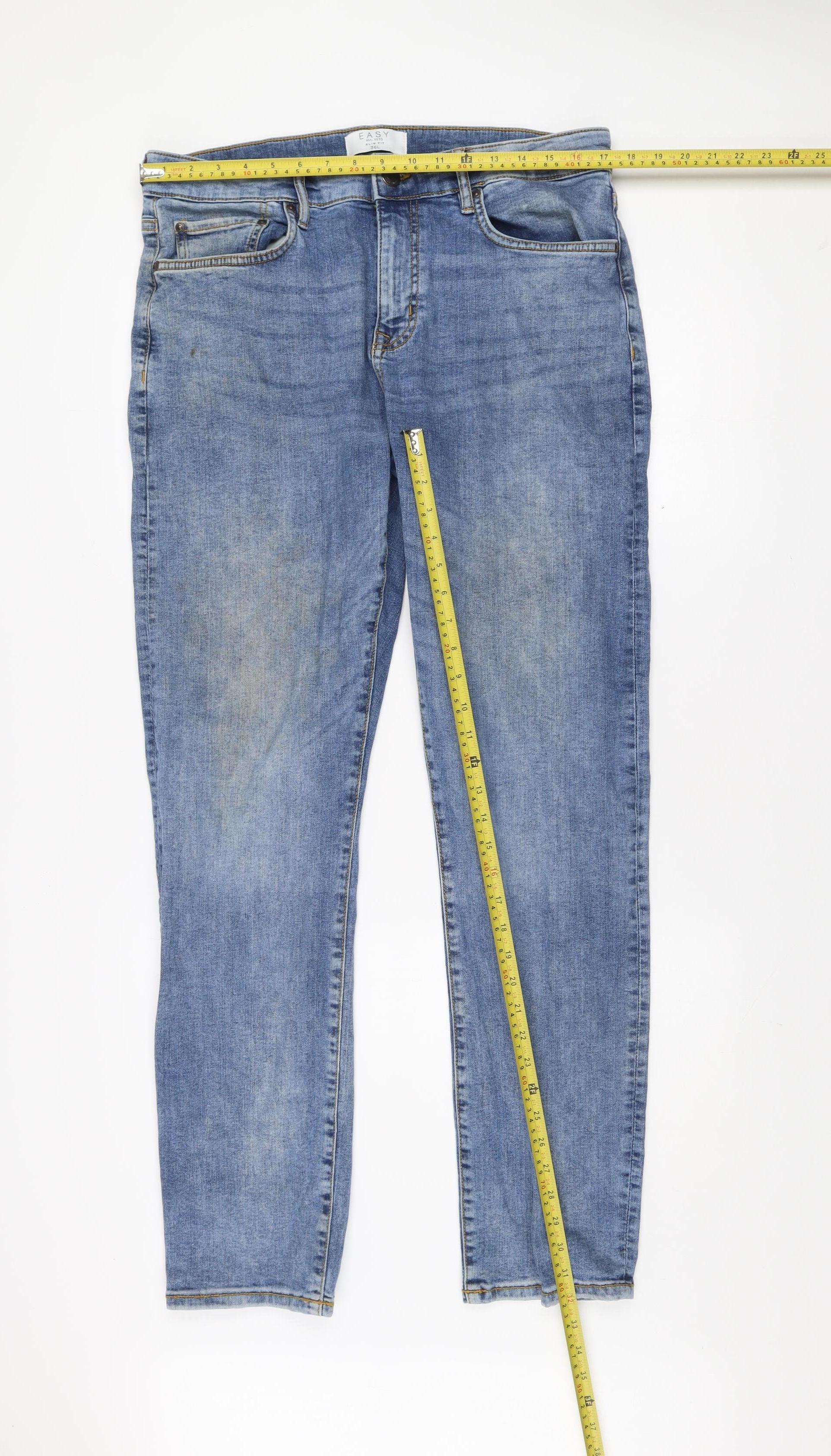 Elevate your casual wardrobe with these Easy brand slim fit blue denim jeans for men, designed for both comfort and timeless style. Crafted from a soft and breathable 99% cotton and 1% elastane blend, these jeans offer the durability of classic denim with just the right amount of stretch for a comfortable, flexible fit throughout the day. The mid wash finish gives a modern, relaxed look that pairs effortlessly with shirts, t-shirts, or jumpers, making it a versatile piece for any season. Featuring a 36-inch waist and a 34-inch inside leg, these jeans offer a flattering slim fit silhouette that tapers subtly through the leg for a clean, modern profile. The five-pocket design provides practicality without compromising on style, allowing you to keep essentials close while maintaining a streamlined appearance. A traditional button and zip fastening ensures a secure fit, while the reinforced stitching and quality craftsmanship showcase durability you can rely on. These jeans strike the perfect balance between casual and smart, great for dressing up with a blazer for a weekend evening out or pairing with trainers for relaxed everyday wear. The breathable denim fabric makes them suitable for all seasons – whether you’re layering up in winter or keeping it cool in summer. Their classic mid wash tone also gives them a lived-in character that complements almost any outfit. In excellent pre-owned condition with only minimal signs of wear and no major flaws, they remain ready to deliver many more stylish wears. Perfect for the man who values comfort and quality, these Easy Slim Fit Jeans are an essential addition to any wardrobe – reliable, versatile, and effortlessly stylish. Complete your look with confidence and timeless appeal with this classic denim essential.
