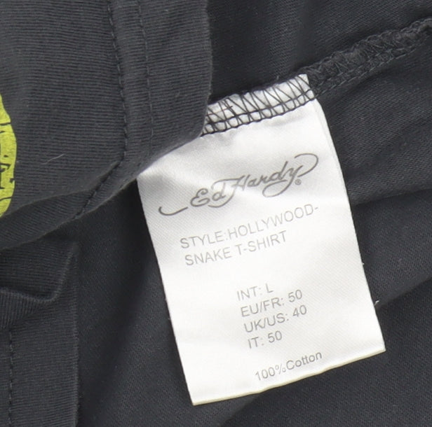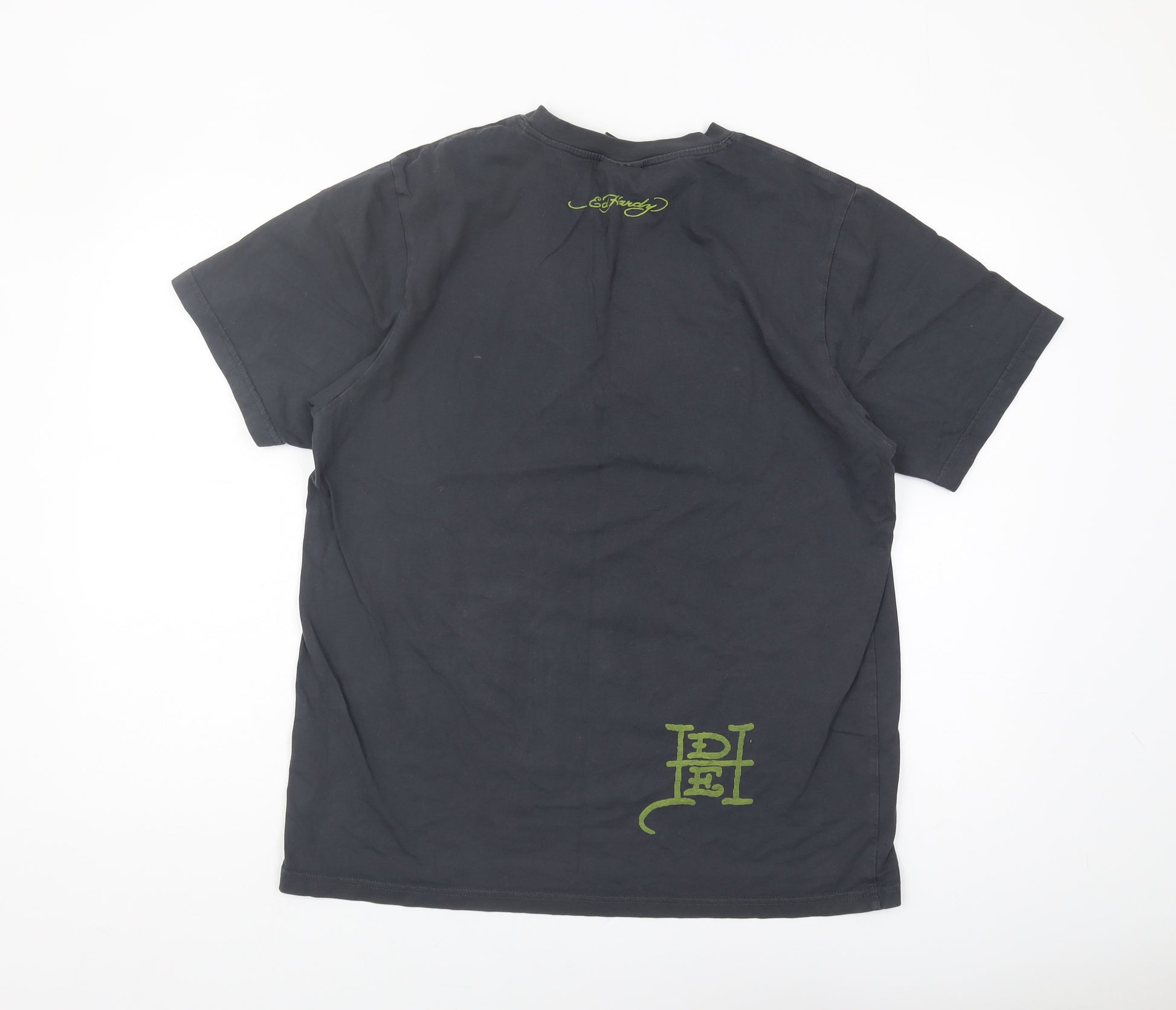 Step out in style with this Ed Hardy T-shirt, featuring the iconic tattoo theme that instantly adds an edge to any outfit. Crafted in a comfortable black cotton fabric, this T-shirt sports a striking graphic print that will draw attention. Designed for men, its crew neckline and short sleeves provide a casual yet polished look, perfect for all seasons. Whether paired with jeans for a laid-back vibe or under a jacket for a night out, this versatile piece offers endless styling options. Don't miss the chance to own a piece of wearable art from a brand known for its bold designs.