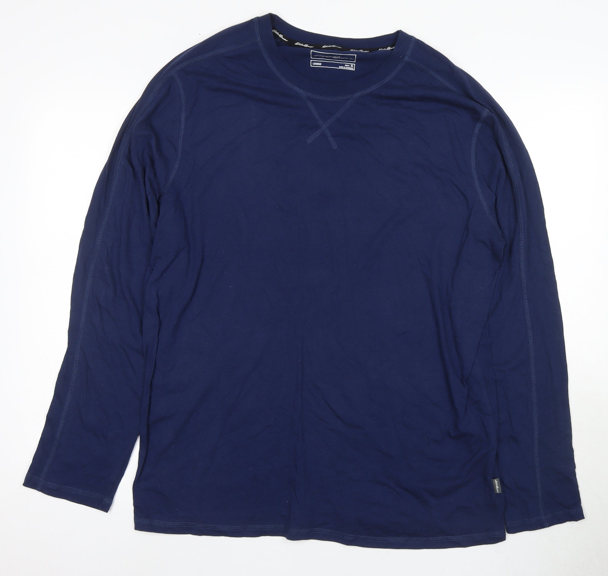 Discover comfort and style with this Eddie Bauer Men's Long Sleeve T-Shirt in a sophisticated blue hue, perfect for any casual outing or relaxed day at home. Crafted from a blend of cotton and polyester, this t-shirt promises durability while offering a soft touch against the skin, ensuring a pleasant wearing experience every time. The regular fit, coupled with its breathable fabric, makes it a versatile choice that complements all body types while providing the flexibility needed for everyday activities. The classic crew neckline adds a timeless appeal, making it an excellent staple for any wardrobe. With a solid pattern, this piece offers a clean and modern look that is easy to match with your favorite pair of jeans or casual trousers. Suitable for all seasons, it's an ideal choice whether you're layering up for a brisk autumn day or pairing it with shorts during the warmer months. Ease is integrated into its design, being machine washable, making it low maintenance. Despite being pre-loved, the condition remains excellent, with no visible marks. This piece retains its charm and reliability, proving to be a valuable addition to your clothing collection. Add a touch of classic elegance to your everyday look with this quality Eddie Bauer T-shirt, now available at an affordable price. Grab this fantastic deal before it's gone!