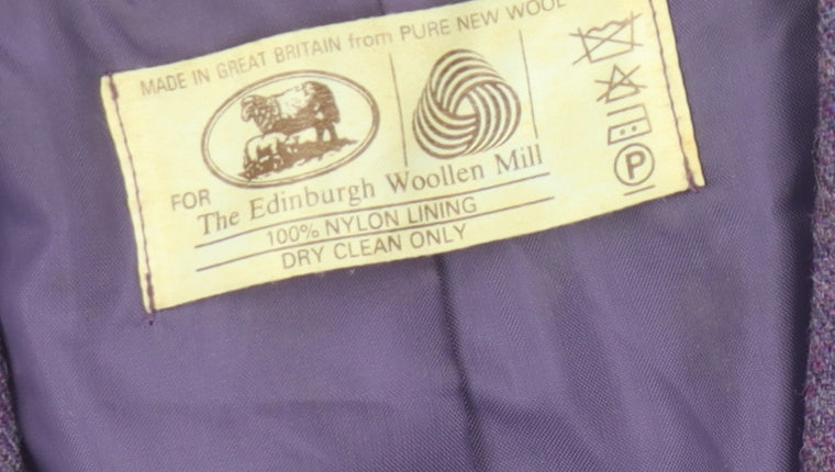 Discover classic elegance with this women's purple blazer from The Edinburgh Woollen Mill. Perfect for various occasions, this blazer is made from high-quality wool in a textured tweed fabric. Featuring a stylish notch lapel, two-button front closure, and regular fit, it combines both style and comfort. The blazer’s rich purple colour adds a pop of sophistication to any outfit, making it a versatile addition to your wardrobe. Though pre-owned, it is well-maintained with just a minor wear mark on the sleeve, ensuring it remains a fashionable choice. Lined with nylon for added comfort, this blazer is ideal for layering over your favourite tops. Designed in the UK, it offers a timeless appeal whether you're dressing for work or a casual day out. Available in size 18, this long-sleeve blazer is easy to care for with dry clean only instructions. Embrace the classic British style with confidence and charm.