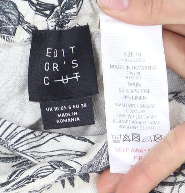 Step into elegance with this Edit Ors Cut Women's Wrap Skirt, designed for the fashion-savvy individual. Crafted with a blend of 92% viscose and 8% linen, this skirt promises comfort and style in equal measure. The multi-coloured floral pattern set against a tropical theme offers a delightful visual treat, making it perfect for the warmer seasons of spring and summer.Whether you're off to a casual brunch or enjoying a leisurely stroll in the park, this midi-length skirt effortlessly combines style with comfort. The wrap design, accented with a tie closure, ensures a flattering fit for every body shape and allows for adjustable comfort. This versatile piece matches well with a simple top or blouse, and its vibrant colours make it a charming addition to your wardrobe.Designed for everyday wearability, the skirt is machine washable, saving you time and effort in its care. Given its gently used condition, this item shows no visible flaws, although as a pre-loved piece, it is priced competitively to ensure great value for your investment.Ideal for casual occasions, this skirt's regular fit and mid-rise design provide a classic silhouette that is both flattering and practical. Don't miss the opportunity to own a piece that combines artistic flair with timeless fashion sense. Pair it with sandals for a day out or dress it up with heels for an evening occasion. Make this beautiful Edit Ors Cut wrap skirt your go-to choice when you want to stand out with subtlety and style.