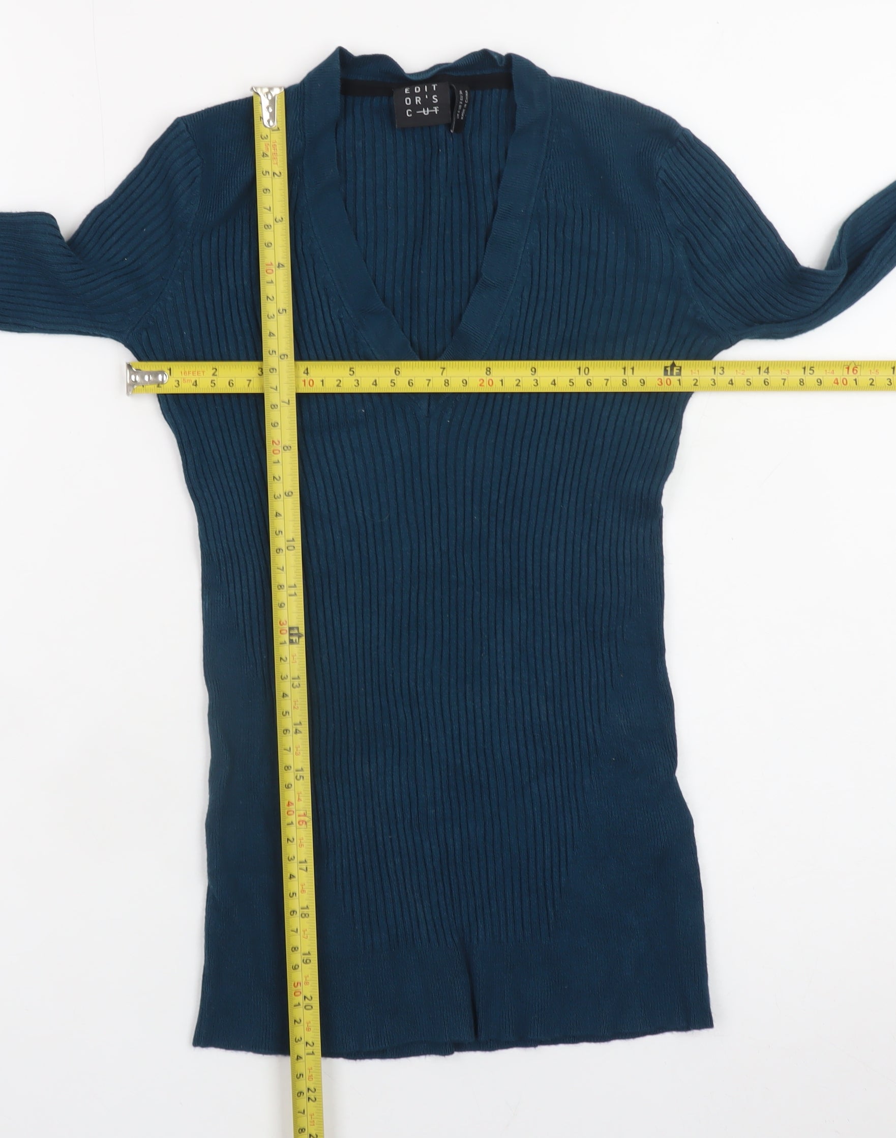 This stylish ribbed jumper from Editor's Cut offers both comfort and sophistication, making it a versatile choice for your wardrobe. Crafted in a deep blue hue, this slim-fit pullover features a classic V-neckline that flatters the neckline while offering comfort and easy layering. The fitted ribbed knit design accentuates the silhouette, giving a streamlined and modern look that pairs effortlessly with jeans, skirts, or tailored trousers. Made from a soft blend of 80% viscose and 20% nylon, the fabric is lightweight yet warm, perfect for cooler seasons like autumn and winter, as well as transitional spring days. The long sleeves and close-fit design ensure warmth without bulk, while the soft, stretchy knit allows comfort and flexibility. The jumper is finished with a finely ribbed hem and cuffs, enhancing its structured yet comfortable feel. Easy to care for, this jumper is machine washable and designed to hold its shape when dried flat, ensuring lasting wear. Ideal for casual days, smart-casual outings, or workwear layering, this Editor’s Cut piece delivers refined simplicity with a touch of elegance. Its understated design makes it easy to dress up or down – wear it under a blazer for the office or with denim for weekend ease. This jumper is in excellent pre-owned condition with no visible flaws or damage. It has been well-maintained, showing very minimal signs of wear. A wardrobe essential that combines style and practicality, the Editor’s Cut ribbed V-neck jumper is a versatile knitwear option for modern women seeking timeless fashion and everyday comfort.