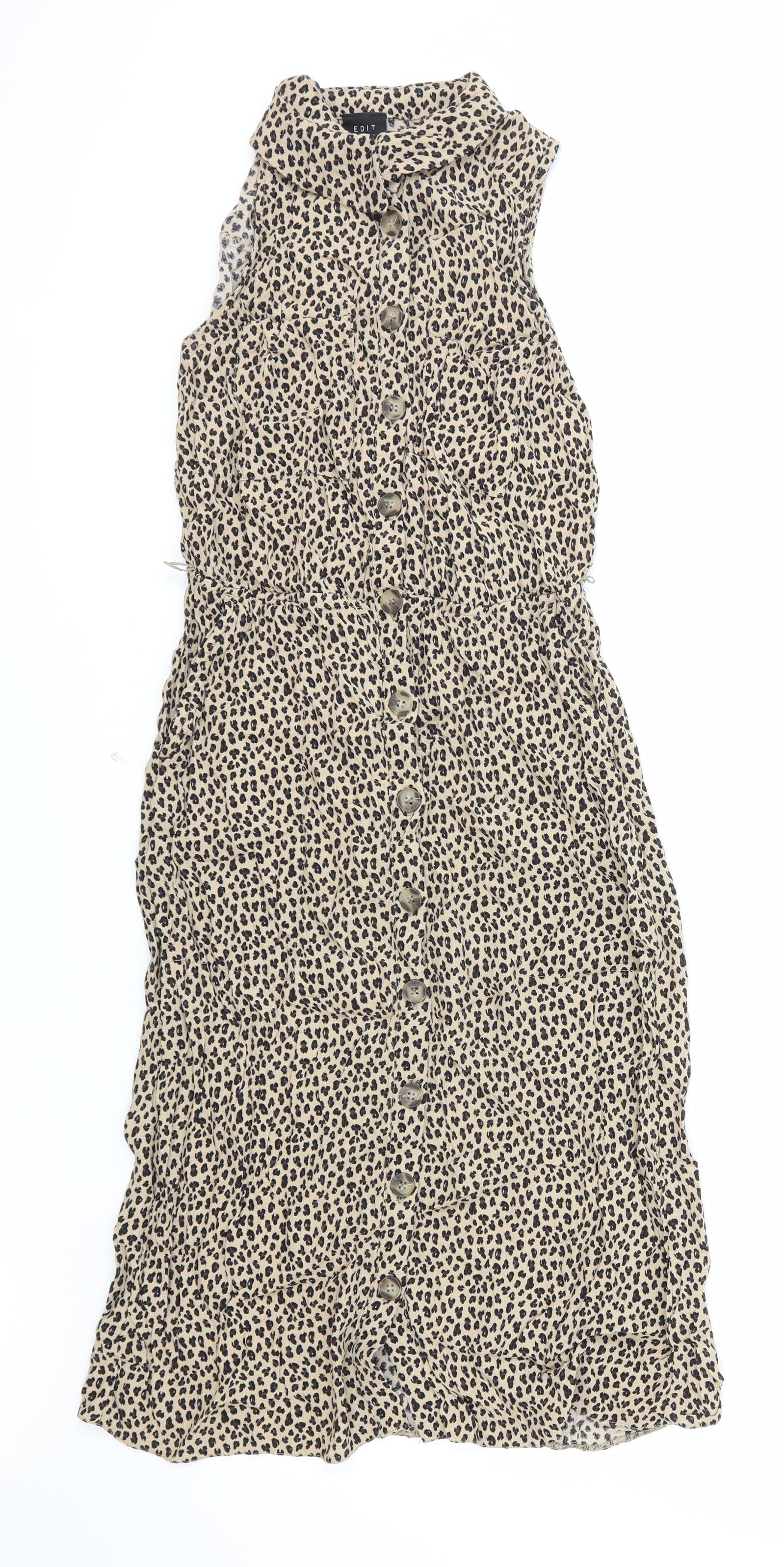 Womens Brown Animal Print Polyester Shirt Dress Size 8 Collared Button - Leopard Print
