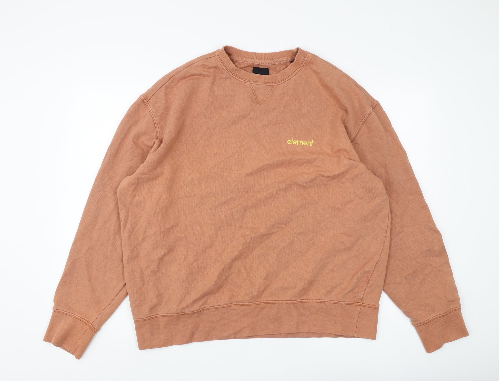 Elevate your casual wardrobe with the stylish Element Men's Pullover Sweatshirt. This sweatshirt, in a versatile shade of brown, is designed for both comfort and style. Crafted from 100% cotton, it offers a soft and comfortable fit. The classic crew neck, combined with long sleeves, makes it an ideal choice for the cooler autumn and winter months. Featuring a subtle logo accent, this sweatshirt offers a minimalist yet modern look, perfect for everyday wear. Pair it with your favorite jeans or joggers for a relaxed outfit that doesn’t compromise on style. Whether you're heading out for a casual day or cozying up indoors, this sweatshirt will keep you comfortable throughout. Easy to care for, it is machine washable, ensuring convenience and durability. Despite signs of slight wrinkling, the condition remains excellent. This wardrobe essential, combining practicality with a touch of subtle branding, is ideal for men who appreciate understated elegance. Don't miss out on adding this versatile piece to your collection.