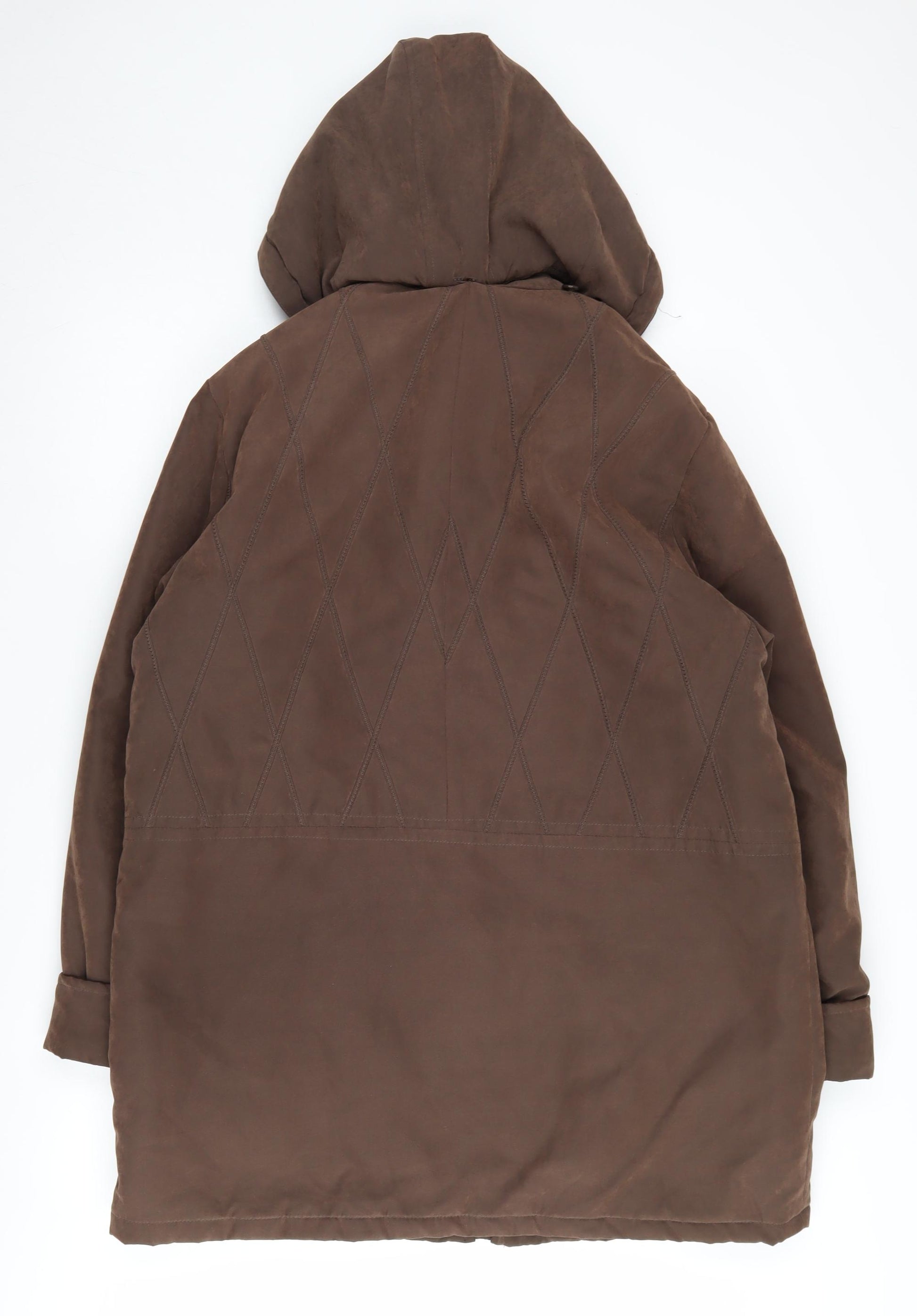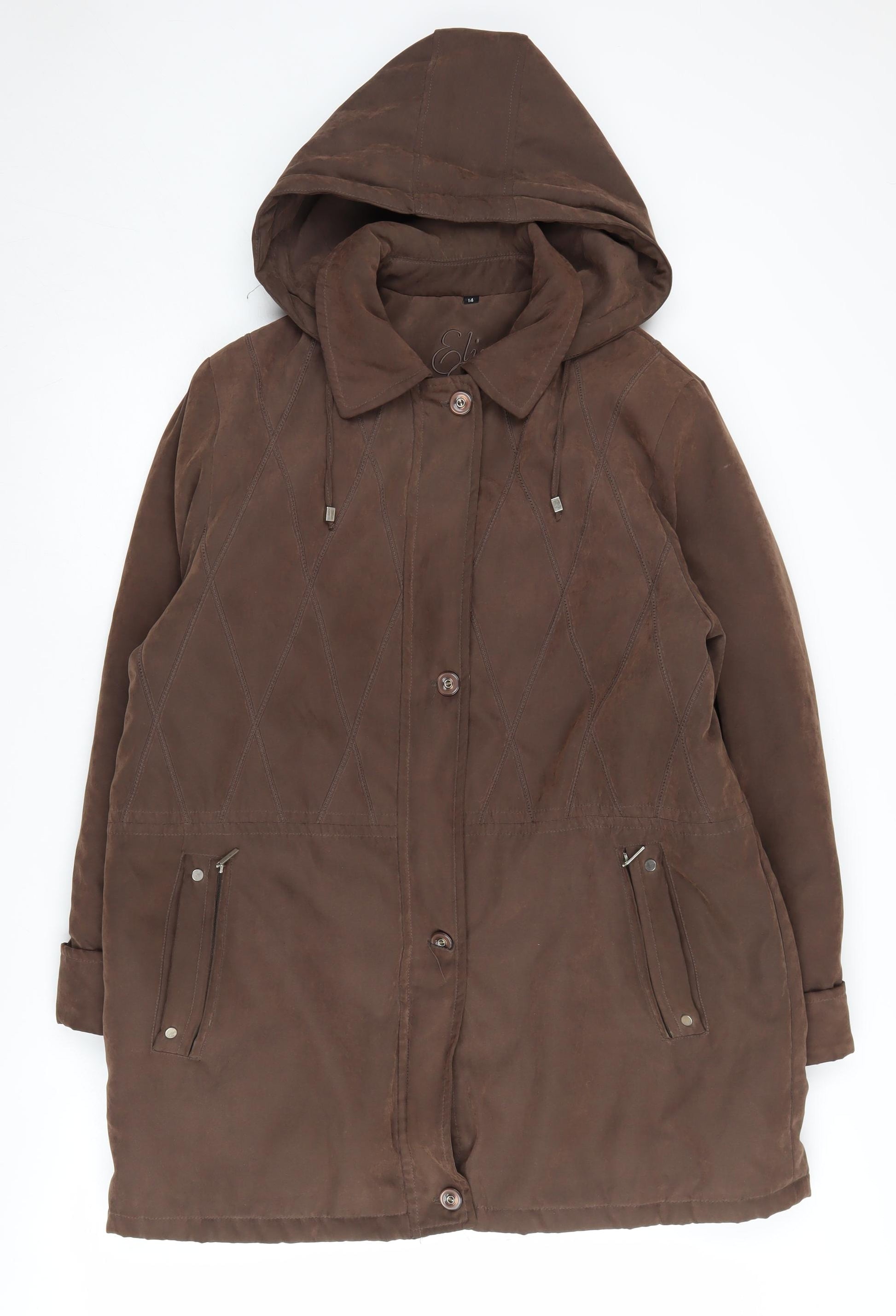 Stay stylishly cosy with this Eliza Gray Brown Parka Jacket, perfect for Autumn and Winter outings. Crafted for women in a regular size 14, this jacket features a classic hooded design with a practical mid-length that provides both comfort and warmth. Constructed from a blend of durable polyester and nylon, it is built to withstand chilly weather without compromising on style. The jacket is accented with buttons, adding a touch of elegance to its casual charm. Equipped with pockets, it offers convenient storage options for daily essentials. Ideal for casual wear, this jacket’s polyester lining ensures it’s easy to care for, being machine washable. Despite being lightly worn, it retains an excellent condition with no notable flaws. Perfect for a day out in the city or a countryside walk, this versatile jacket offers effortless chic with its simple, yet effective design.