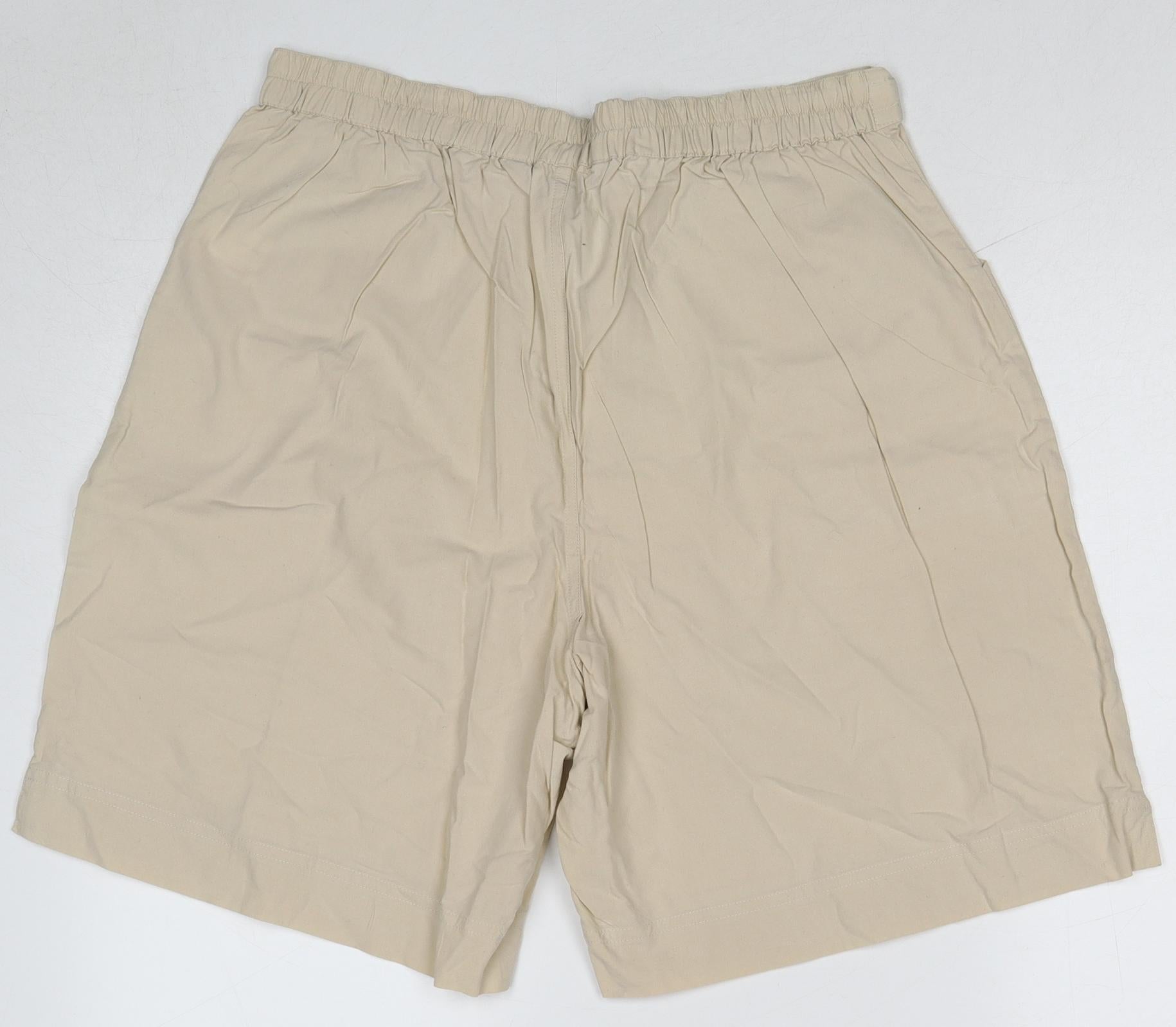Womens Beige Cotton Culotte Shorts Size L Regular Drawstring