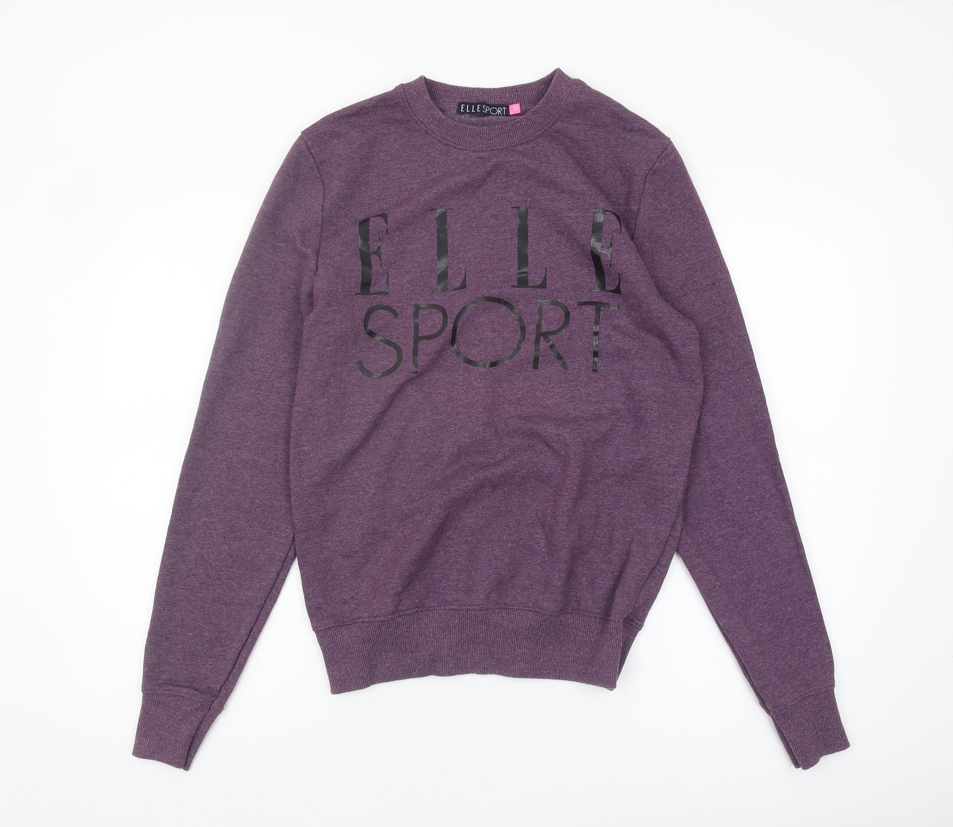 Discover easygoing style with this ELLE SPORT women's purple pullover sweatshirt, perfect for both activewear and casual outings. Featuring a chic logo accent and crafted from a comfy blend of cotton and polyester, this long sleeve sweatshirt ensures warmth and breathability all year round. The classic sweatshirt design, complemented by a crew neckline and regular fit, enhances its versatility in your wardrobe. Whether you're heading to the gym or lounging at home, this graphic print piece effortlessly transitions between settings. Machine washable for fuss-free care, it maintains its quality and colour wash after wash. The understated elegance of this no-pattern design invites you to pair it with your favourite jeans or workout leggings. Brand: ELLE SPORT; Size: UK 10; Material: 60% Cotton, 40% Polyester; Colour: Purple. Add a dash of sporty flair to your collection with this meticulously crafted sweatshirt.