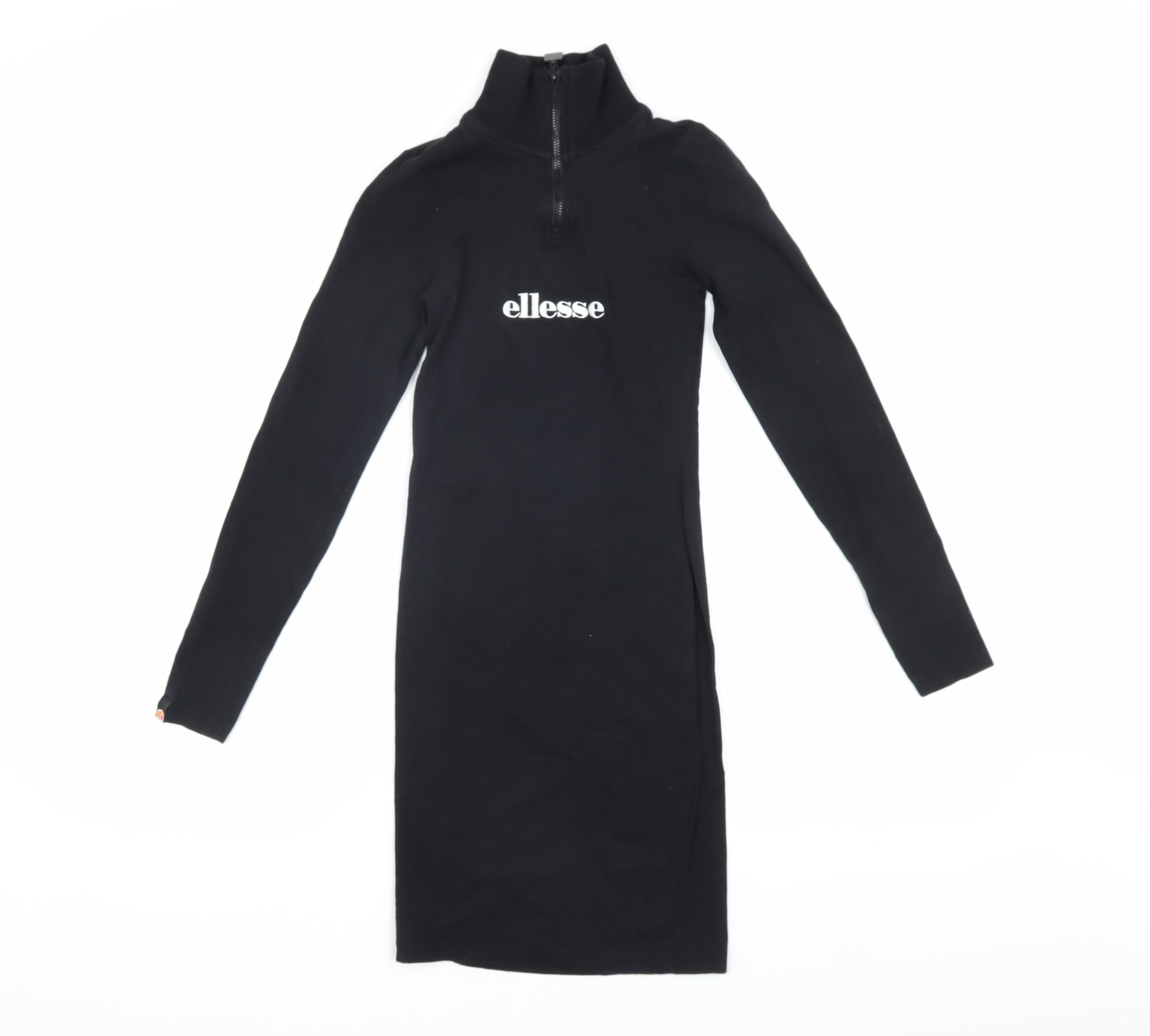 Step out in style and comfort with this sleek Ellesse Women's Black Bodycon Knit Dress. Perfect for casual occasions, this dress is crafted with a blend of cotton and elastane to provide a comfortable stretch, ensuring it accentuates your silhouette beautifully. The understated zipper closure at the front makes it easy to slip into, while the high neck and long sleeves add a touch of sophistication and warmth, ideal for the cooler autumn and winter seasons. The dress features the iconic Ellesse logo, adding a subtle yet distinctive touch, proving to be a versatile choice for various casual outings. Whether you're heading out for a day of shopping or meeting friends for a coffee, this bodycon dress is guaranteed to be an excellent addition to your wardrobe. Made with durability in mind, the fabric retains its shape wash after wash. Elevate your fashion game with this classic piece that's both stylish and functional.