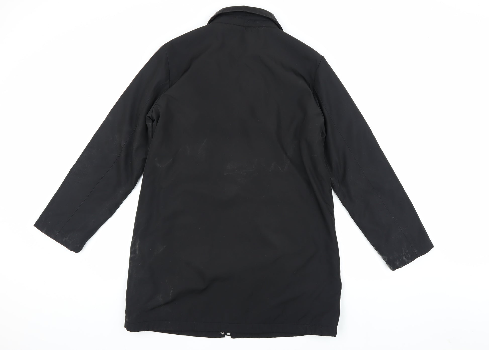 Elevate your winter wardrobe with this sleek black overcoat from Ellie Lou Ise, designed for those with a taste for classic elegance. Crafted from durable polyester, this mid-length coat is ideal for both autumn and winter months, providing warmth and style in equal measures. Its regular fit ensures a comfortable wear, suitable for layering over your favourite outfits. Featuring a collared neckline and full zip closure, complemented by buttons, this coat is an excellent choice for casual outings during the colder seasons. The polyester lining adds an extra layer of insulation, making it perfect for keeping the chill at bay. The coat is designed with practicality in mind, with long sleeves providing ample coverage and protection against the elements. With its understated design and no pattern detailing, this versatile overcoat pairs effortlessly with any ensemble, whether you're heading to a casual gathering or a relaxed day out. Machine washable, it promises easy care, ensuring it remains a staple in your wardrobe for seasons to come. Despite being pre-loved with some signs of wear, it remains in good condition, offering unbeatable value and timeless style at an affordable price. Make this classic Ellie Lou Ise overcoat yours today and add a touch of sophistication to your cold-weather collection.