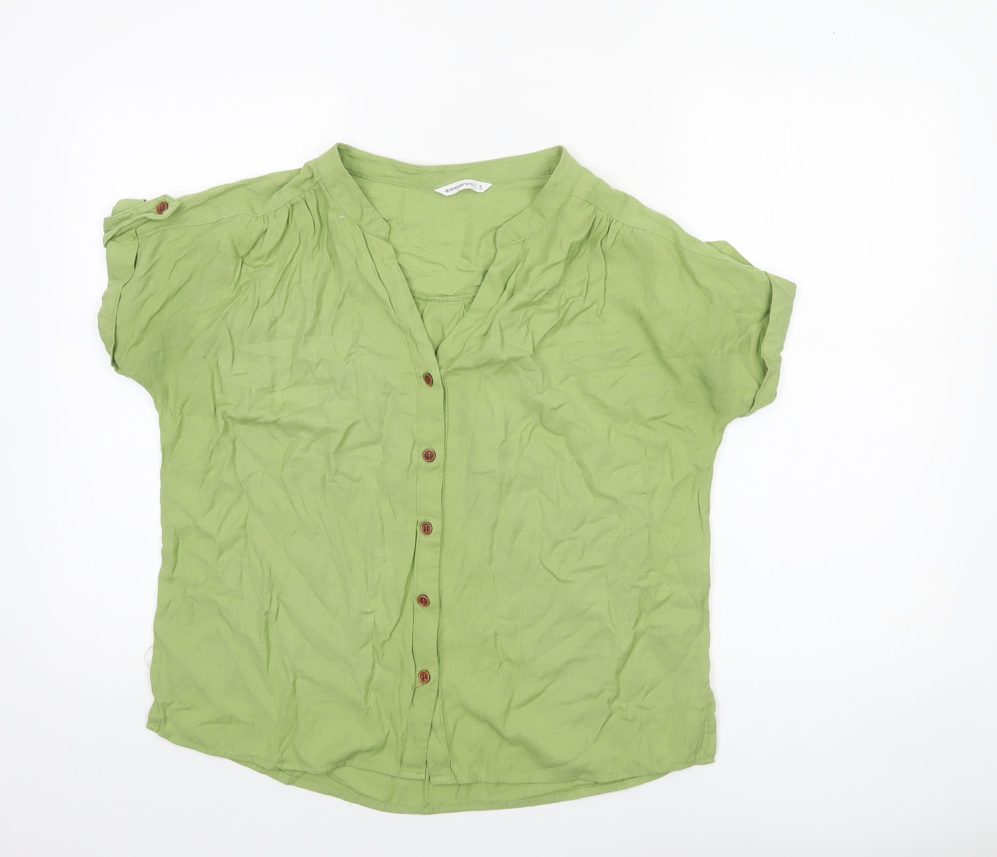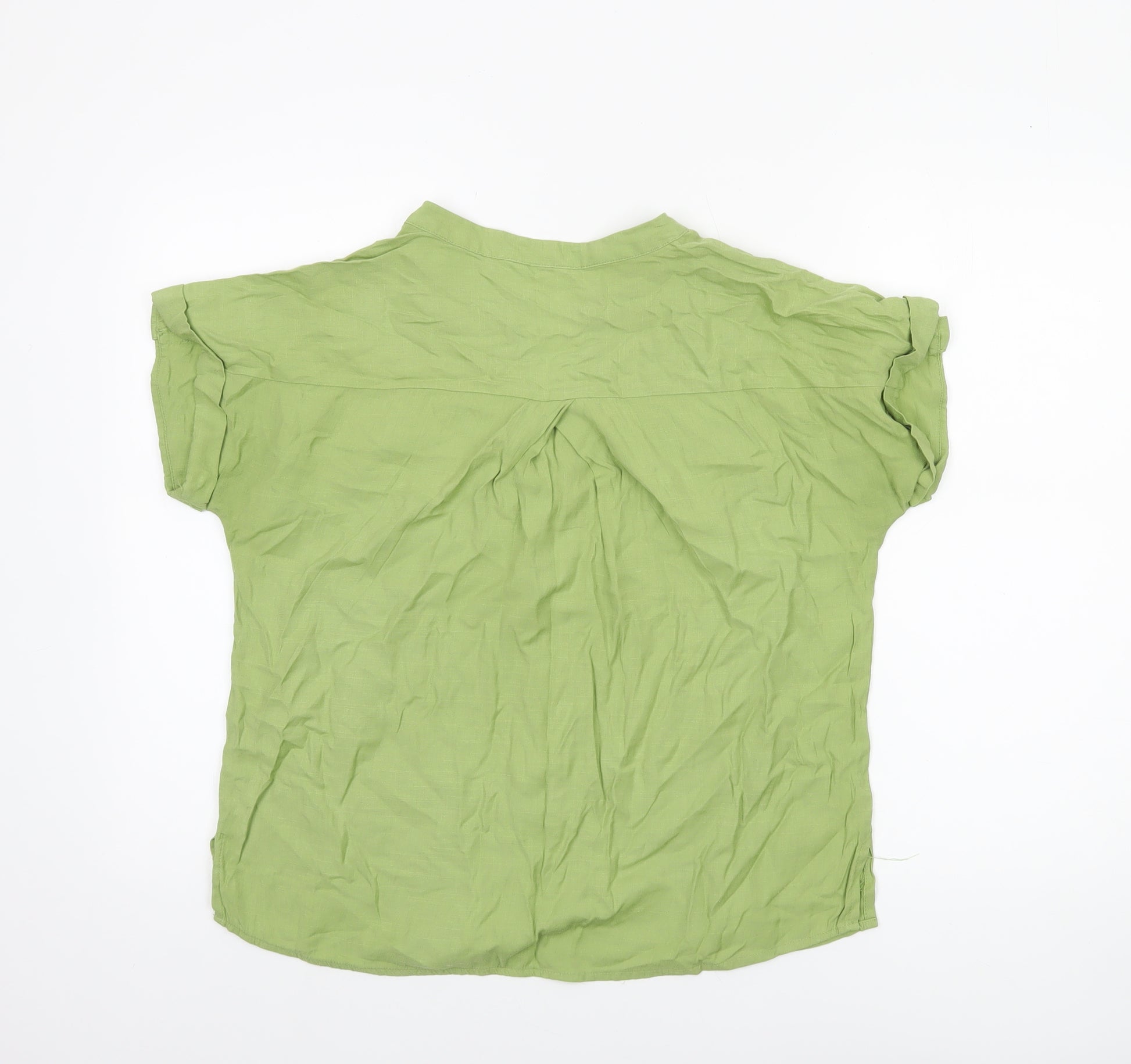 Bring effortless elegance to your casual wardrobe with this delightful green short sleeve blouse from Encuentro. Crafted entirely from lightweight woven polyester, this top ensures breathable comfort while maintaining a polished appearance. The soft, flowing fabric drapes naturally, delivering a relaxed yet refined shape that flatters the figure without feeling restrictive. Designed in a refreshing spring green tone, it adds a pop of colour that transitions seamlessly between seasons, making it a versatile must-have for any woman’s wardrobe. This blouse features a flattering V-neckline complemented by a button front closure, creating a laid-back yet stylish look suitable for both casual outings and smart-casual settings. The short sleeves include subtle roll tab details, enhancing the relaxed feel with a touch of design interest. Whether you pair it with jeans for a weekend brunch or tailored trousers for a day at the office, this top offers a versatile foundation piece that blends comfort and simplicity effortlessly. Though previously loved, the blouse remains in excellent condition with lightly worn fabric and only minor creasing visible from storage, easily refreshed with a quick press. The 100% polyester construction ensures easy care—machine washable and durable enough for everyday wear. Ideal for spring and summer, this blouse offers lightweight breathability that keeps you cool while maintaining a neat appearance throughout the day. A staple for any collection, it embodies understated sophistication and relaxed femininity. Perfect for women seeking an easy-wear top that balances comfort and elegance, this Encuentro blouse is ready to become one of your effortless go-to favourites.