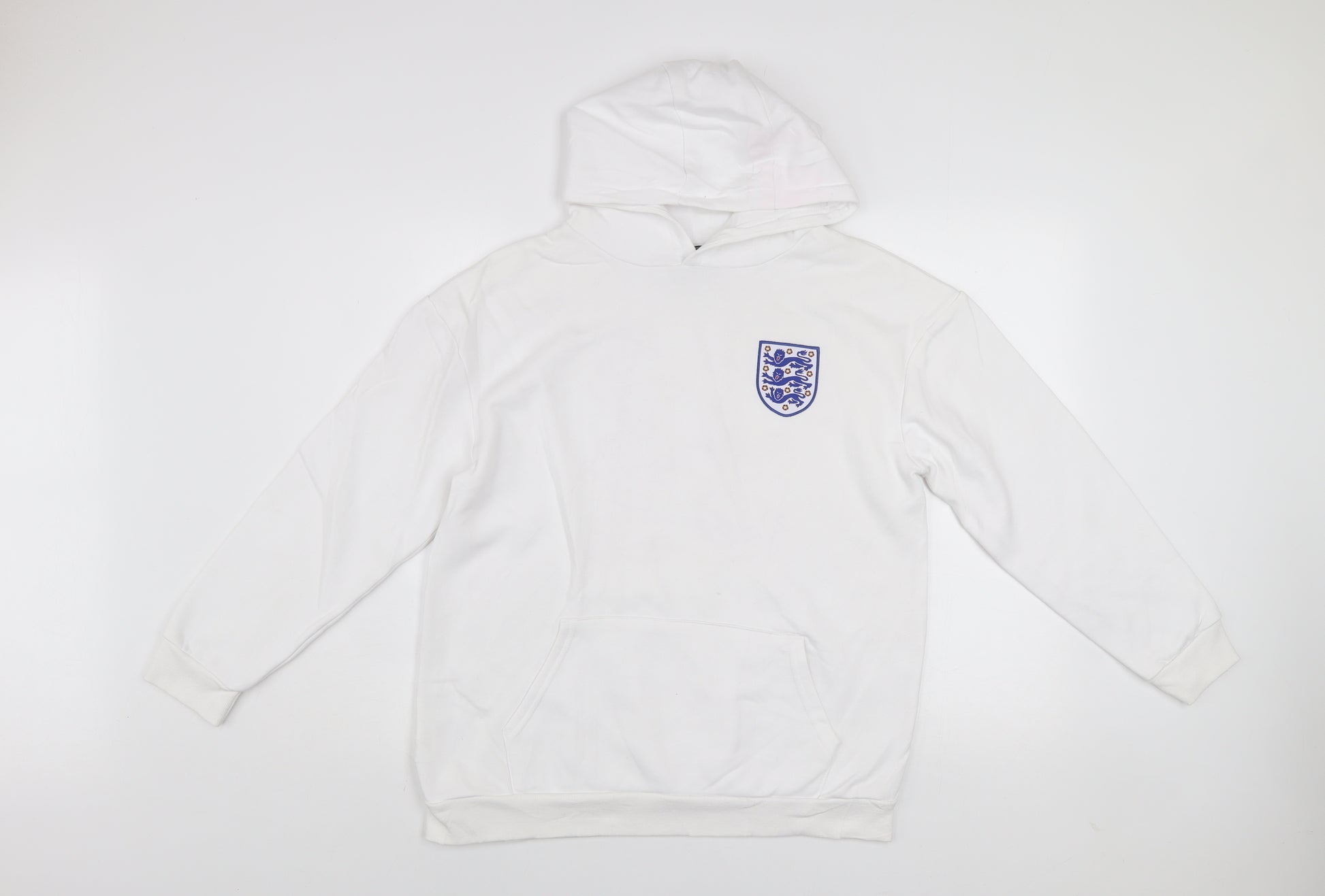 Boys White Hoodie 12-13 Years Pullover Cotton Blend Football Crest