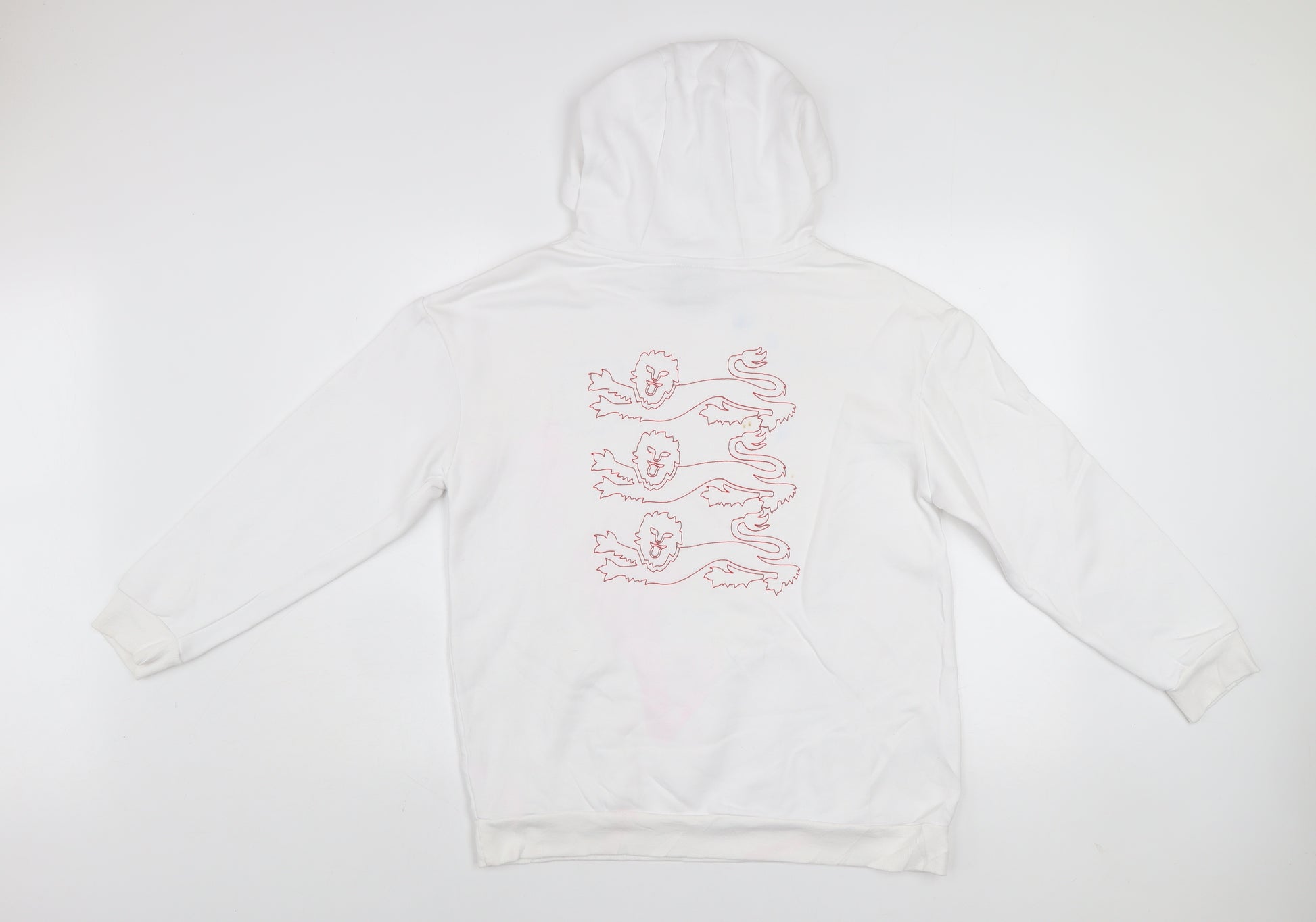 Get ready to show your passion for the game with this classic white boys’ hoodie featuring the iconic England three lions crest, perfect for young football fans. Crafted from a soft and comfortable cotton-polyester blend, this pullover hoodie is designed to keep kids warm and relaxed both on and off the pitch. Whether it’s matchday or a casual day out, its premium quality fleece fabric offers the right balance of warmth and breathability. With a regular fit and cosy long sleeves, this hoodie works perfectly for layering during autumn, winter, and spring. The bold graphic detailing and embroidered-style England badge on the chest bring an authentic touch of sporty pride, while the subtle back design adds personality without being overbearing. The kangaroo front pocket gives this hoodie both practicality and relaxed style, ideal for keeping hands warm or carrying essentials. The pullover style and soft-lined hood make it an easy go-to piece for football training, school wear, or casual weekends. Finished in a crisp white shade, it pairs effortlessly with joggers, jeans, or shorts for a laid-back athletic look. Designed for boys aged 12–13 years, this hoodie fits comfortably with durable ribbed cuffs and hem for a snug feel that retains shape wash after wash. Lightweight yet insulating, this hoodie will keep your young fan comfortable through every season. It’s machine washable for easy care, making it perfect for active lifestyles. Represent your team proudly and keep cosy in this timeless piece of England football-inspired outerwear. A brilliant gift or wardrobe staple for any sports enthusiast ready to support their favourite team in style.