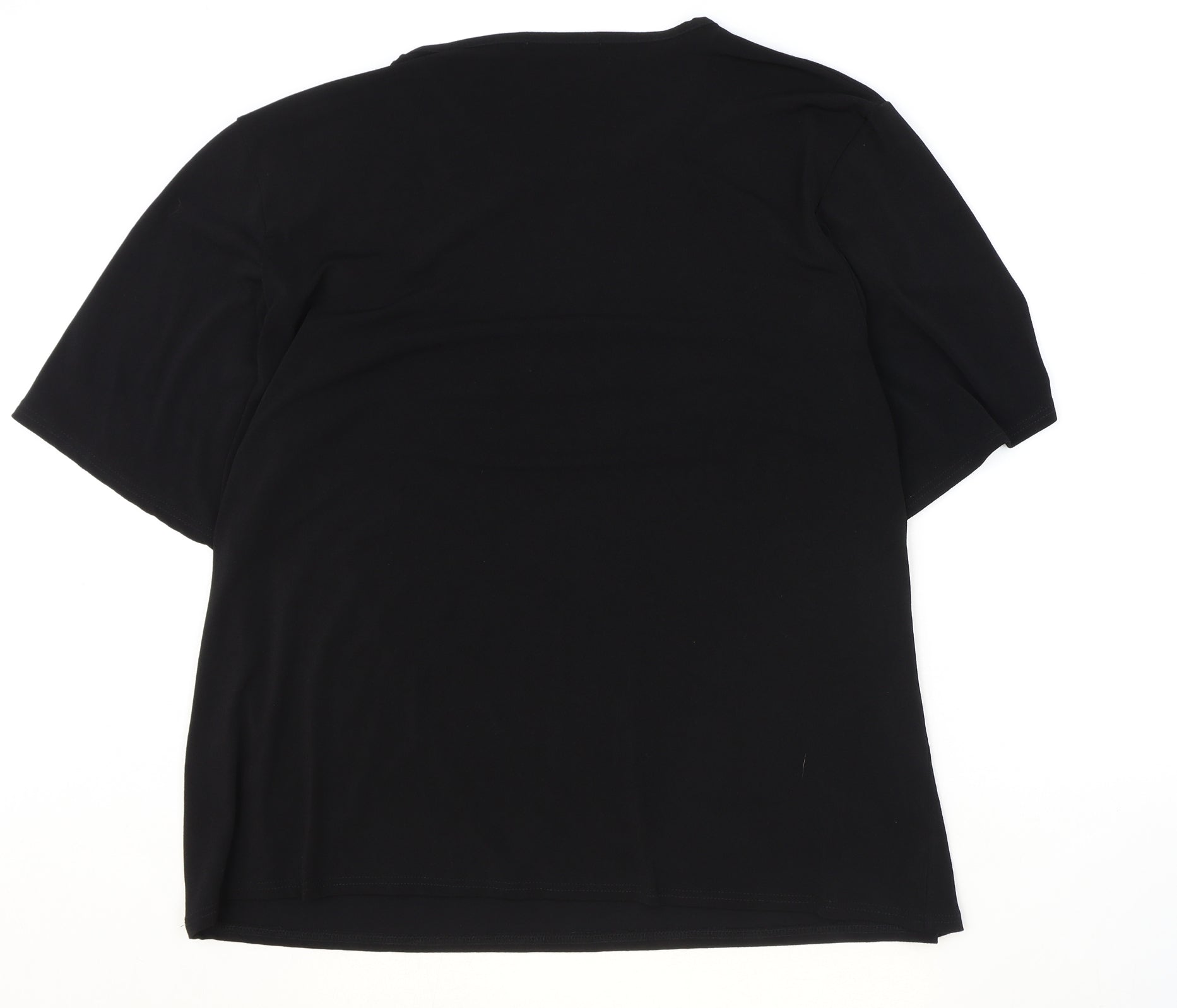Womens Black Polyester Basic T-Shirt Size 26 Round Neck