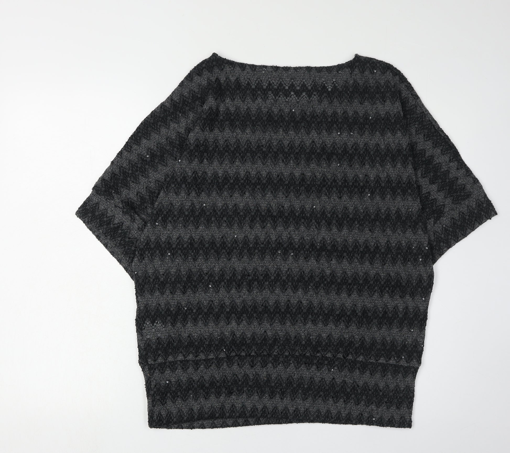 Embrace the perfect blend of style and comfort with this Epilogue Women's Pullover Jumper. Crafted for the modern woman, this jumper features a chic black hue that effortlessly complements any wardrobe. The geometric pattern offers a touch of elegance and sophistication, making it ideal for casual outings during the cooler autumn and winter seasons. The relaxed fit, coupled with short dolman sleeves, ensures you’ll experience maximum comfort without compromising style. Tailored in a regular size 12, this jumper provides a flattering silhouette for a versatile look. The boat neck adds a subtle, stylish touch, making it perfect for pairing with jeans or a fitted skirt. Made from high-quality polyester and viscose, it promises durability and a soft, lightweight feel that's ideal for layering. This jumper is machine washable, which makes it convenient for regular wear. Its excellent condition is mirrored by its no-visible defects, offering you a quality item that looks as good as new. Treat yourself to this casually sophisticated piece, perfect for adding a touch of warmth and style to your everyday outfit.
