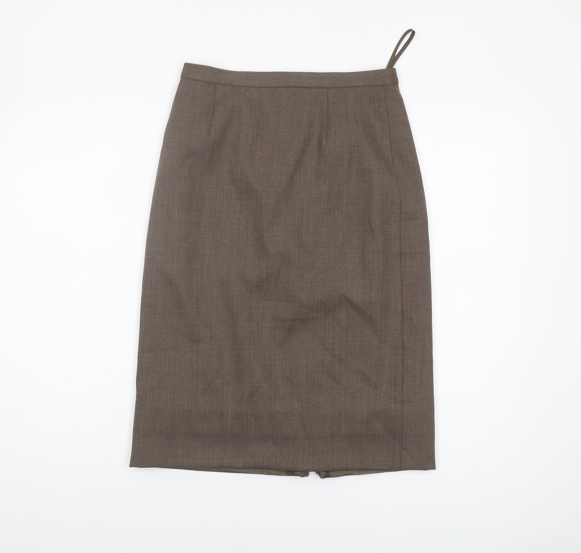 Step up your workwear wardrobe with this sophisticated brown pencil skirt from Episode, meticulously tailored for modern women who appreciate timeless style. Crafted to offer both comfort and elegance, this sleek skirt is perfect for business or formal occasions. Made from a high-quality blend of 53% Polyester, 40% Wool, 5% Nylon, and 2% Spandex, it delivers a luxurious feel while providing just the right amount of stretch for ease of movement. The visually appealing, subtle brown hue makes it ideal for pairing with various blouses and tops, ensuring versatility in your outfit choices. Designed in a straight and pencil style, this skirt promises a flattering silhouette that enhances your natural shape. Its classic design features a convenient zip closure and a subtle slit for added sophistication and ease of movement. Perfect for autumn and winter wear, this skirt promises to keep you stylishly warm, whether you're heading to the office or a business meeting. Despite being in excellent pre-owned condition, this piece exudes brand new allure with no visible wear or damage, assuring you a polished look each time you wear it. Enhance your collection with this chic yet functional Episode skirt, priced attractively at just £20.00.