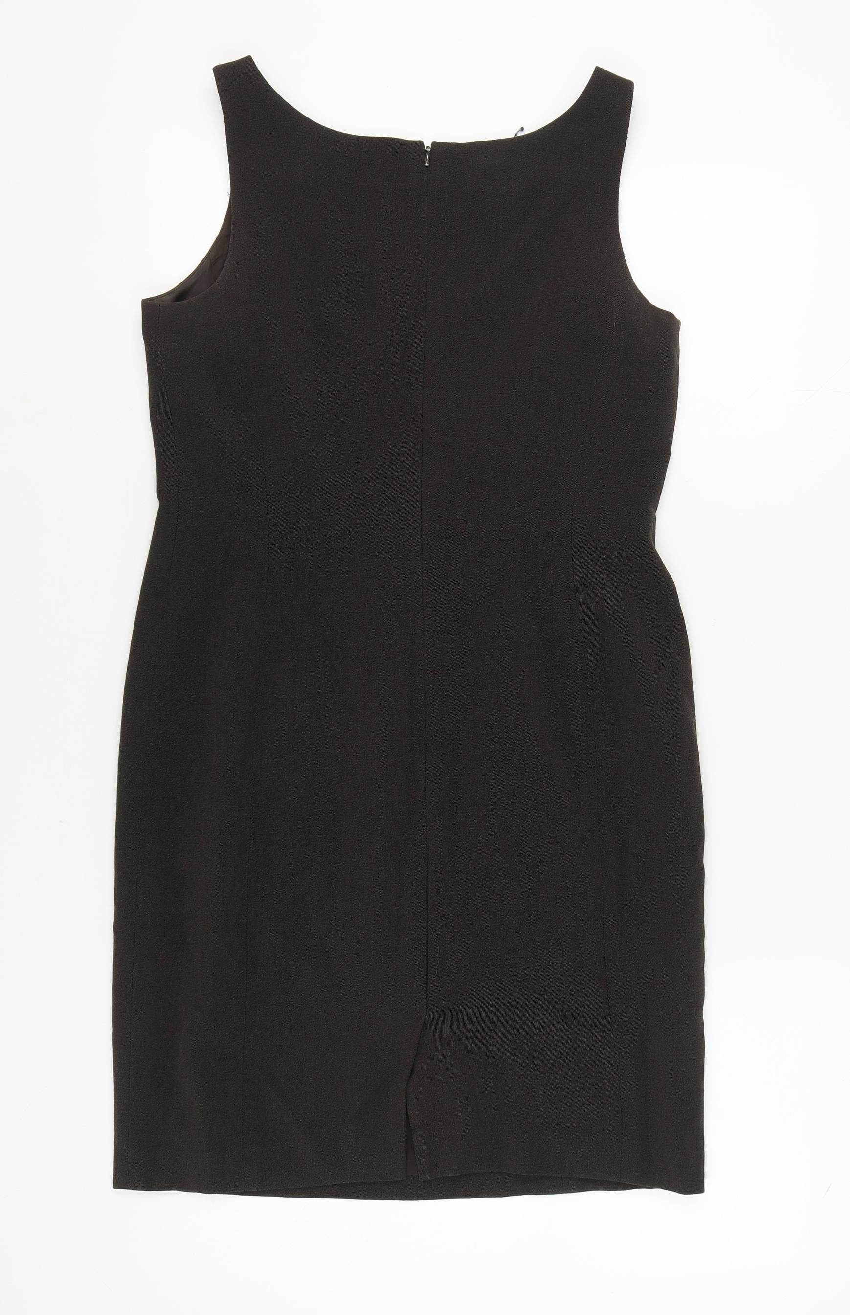 Discover this timeless sleeveless sheath dress from Episode, crafted in a rich brown hue that's perfect for both business and casual settings. Designed for women, this knee-length dress features a classic scoop neckline and a convenient zip closure. The dress is made from a luxurious blend of 89% wool and 11% polyester, ensuring both comfort and durability. Ideal for autumn and winter, it's a versatile addition to your wardrobe. The woven fabric and lined construction offer an excellent fit and feel. Easily suitable for business meetings, casual outings, or professional workwear, this dress remains in excellent condition, free of any visible damage. Embrace the elegant simplicity and classic theme of this Episode dress, perfectly tailored for the modern woman who values both style and comfort.