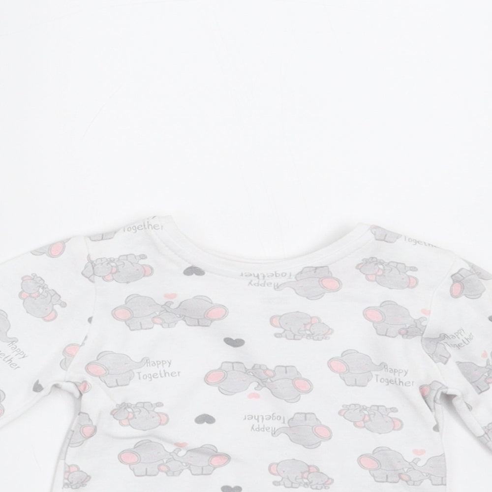 Girls White Basic T-Shirt Size 0-3 Months - Elephant Print