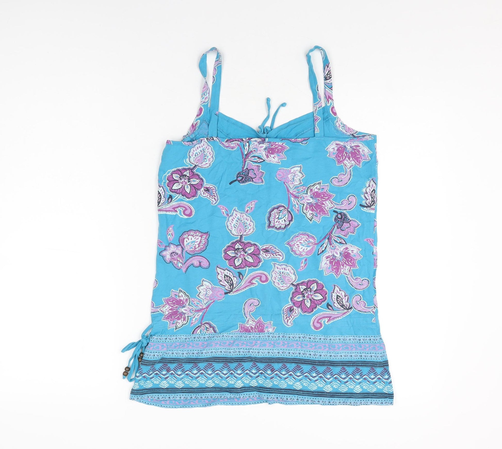 Womens Blue Floral Cotton Basic T-Shirt Size M V-Neck