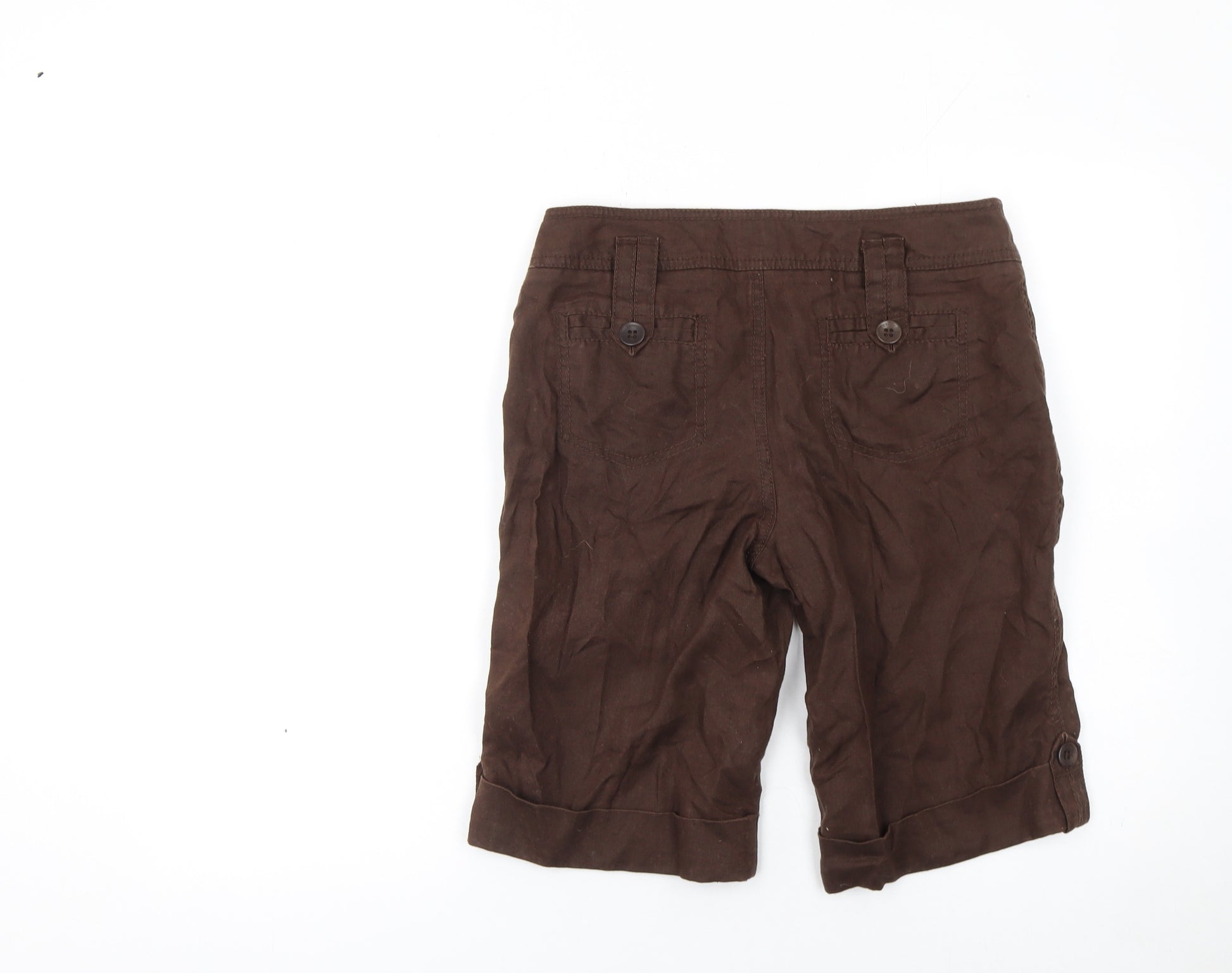 Women Brown Linen Bermuda Shorts Size 10 Regular Fit Casual