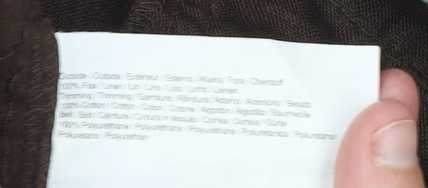 Stay cool and comfortably stylish this season in these classic brown Bermuda shorts by Esprit. Crafted from 100% linen, the fabric ensures breathability and lightweight comfort, making them a perfect choice for warm weather wear. Designed for women, these shorts offer a regular fit with a mid-rise waist for a flattering, easy-to-wear silhouette that pairs well with a variety of tops. The front of the shorts features a button and zip fastening, complemented by practical slash pockets and twin button-tab accents for a touch of refined casual style. The rolled cuffs and back buttoned flap pockets add subtle detail, making them ideal for relaxed, everyday looks. Whether you're heading to the beach, running errands, or enjoying a summer afternoon outdoors, these shorts deliver a laid-back yet polished aesthetic. The pure linen construction not only feels soft against the skin but also provides temperature-regulating properties, ensuring all-day comfort. In a versatile deep brown shade, these shorts can be styled with light blouses, cotton tees, or relaxed shirts for an effortlessly chic finish. Conditioned in very good pre-owned shape with minimal signs of wear, these shorts show light creasing consistent with linen fabric and gentle prior use. They remain in excellent structural condition, reflecting their quality craftsmanship. Perfect for casual, travel, or holiday occasions, these Esprit Bermuda shorts capture the right blend of comfort and everyday sophistication. A sustainable wardrobe staple to rely on year after year that pairs beautifully with sandals or trainers, and light summer jackets or tunics. Revamp your summer essentials with this versatile Esprit piece that perfectly balances casual charm and refined design.