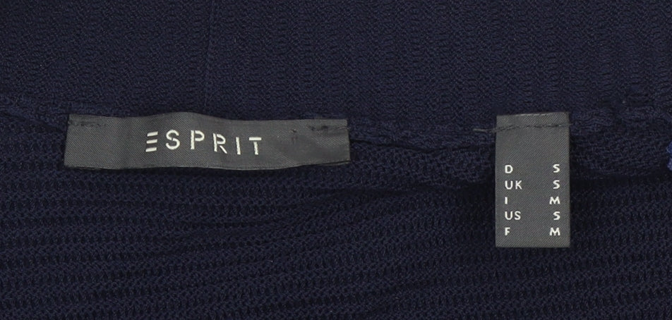 Stay effortlessly stylish and comfortable with this Esprit Women’s Navy Blue Open Front Long Sleeve Cardigan in size Small. Designed for a relaxed yet refined look, this cardigan offers a classic silhouette that’s easy to pair with any outfit. Crafted from a soft cotton-blend knit, it provides warmth while remaining lightweight and breathable — perfect for layering during the transitional seasons. The ribbed-knit texture adds a touch of sophistication and depth to the design while keeping the fabric durable and resilient.The cardigan features a timeless open-front style, ideal for casual days out, workwear layering, or travel comfort. Its deep navy blue hue ensures versatile styling options, effortlessly complementing jeans, dresses, or tailored trousers. With long sleeves and a smooth, round neckline, it delivers both simplicity and elegance, making it an essential wardrobe staple for all-year wear.Made with a blend of 56% cotton, 39% nylon, and 5% polyester, this garment balances softness with structure, retaining shape and comfort even after repeated washes. It’s easy to care for with machine-washable convenience, making it practical for everyday wear.Although showing light pilling on the back, it remains in very good condition overall, displaying minimal signs of prior use.Perfect for those who appreciate quality, comfort, and effortless chic style, this Esprit cardigan embodies modern casual elegance. Ideal for layering over tops in spring or under coats in colder months, it will quickly become a reliable favourite in your wardrobe. Whether you’re heading to the office or enjoying a relaxed weekend brunch, this piece adapts seamlessly to your lifestyle – wear it again and again for timeless appeal combined with day-long comfort.