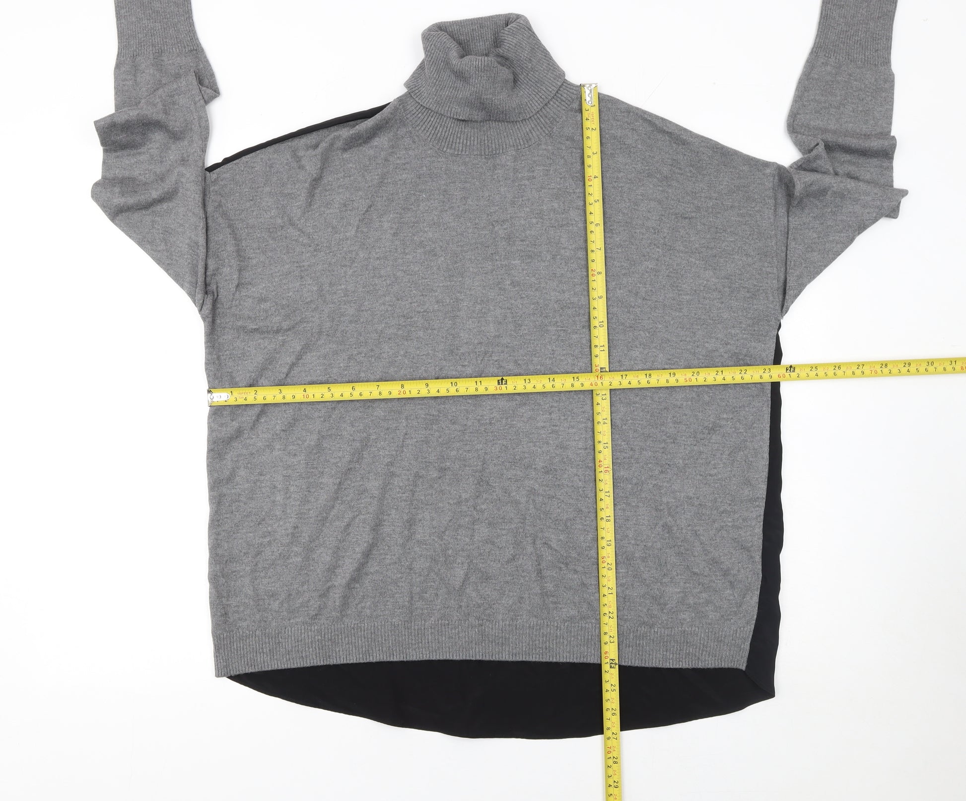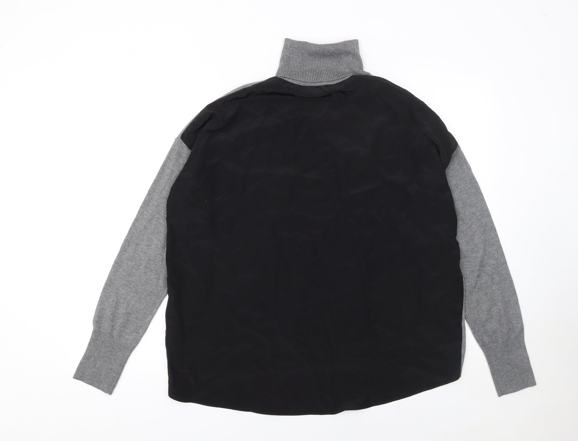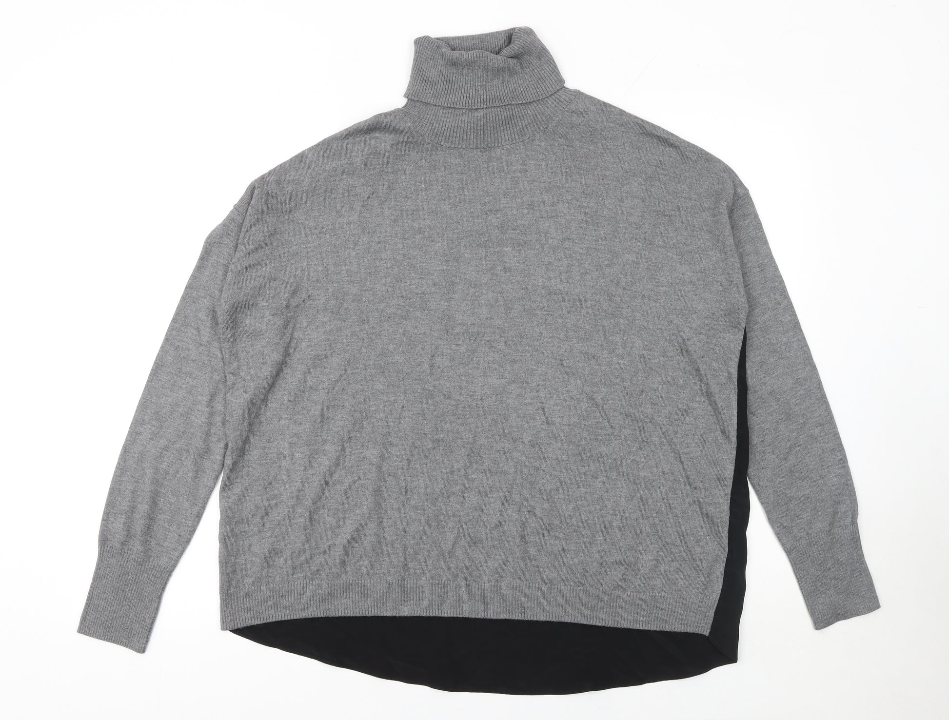 Womens Grey Roll Neck Long Sleeve Cotton Wool Jumper Size M