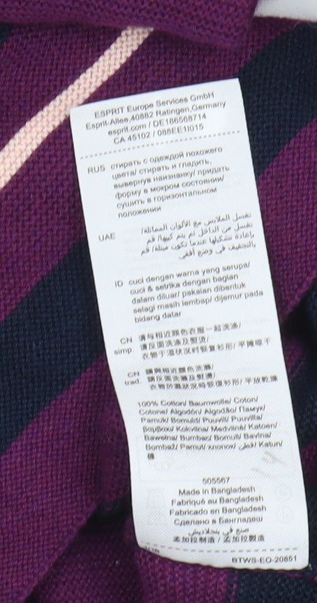 Add a vibrant touch to your wardrobe with this Esprit Women's Multicoloured Striped Pullover Jumper. Crafted from 100% cotton, this cosy jumper ensures a soft and comfortable feel against your skin. Its regular fit and crew neckline make it a versatile addition to your casual wear collection. The long sleeves provide extra warmth, making it perfect for autumn and winter days. Designed with a striking striped pattern in various bold colours, this knit jumper effortlessly combines style and colour for a standout look. Ideal for casual occasions, you can easily pair it with your favourite jeans or trousers for a relaxed yet chic appearance. This machine washable jumper is practical and easy to care for, ensuring it remains a staple in your wardrobe for seasons to come.