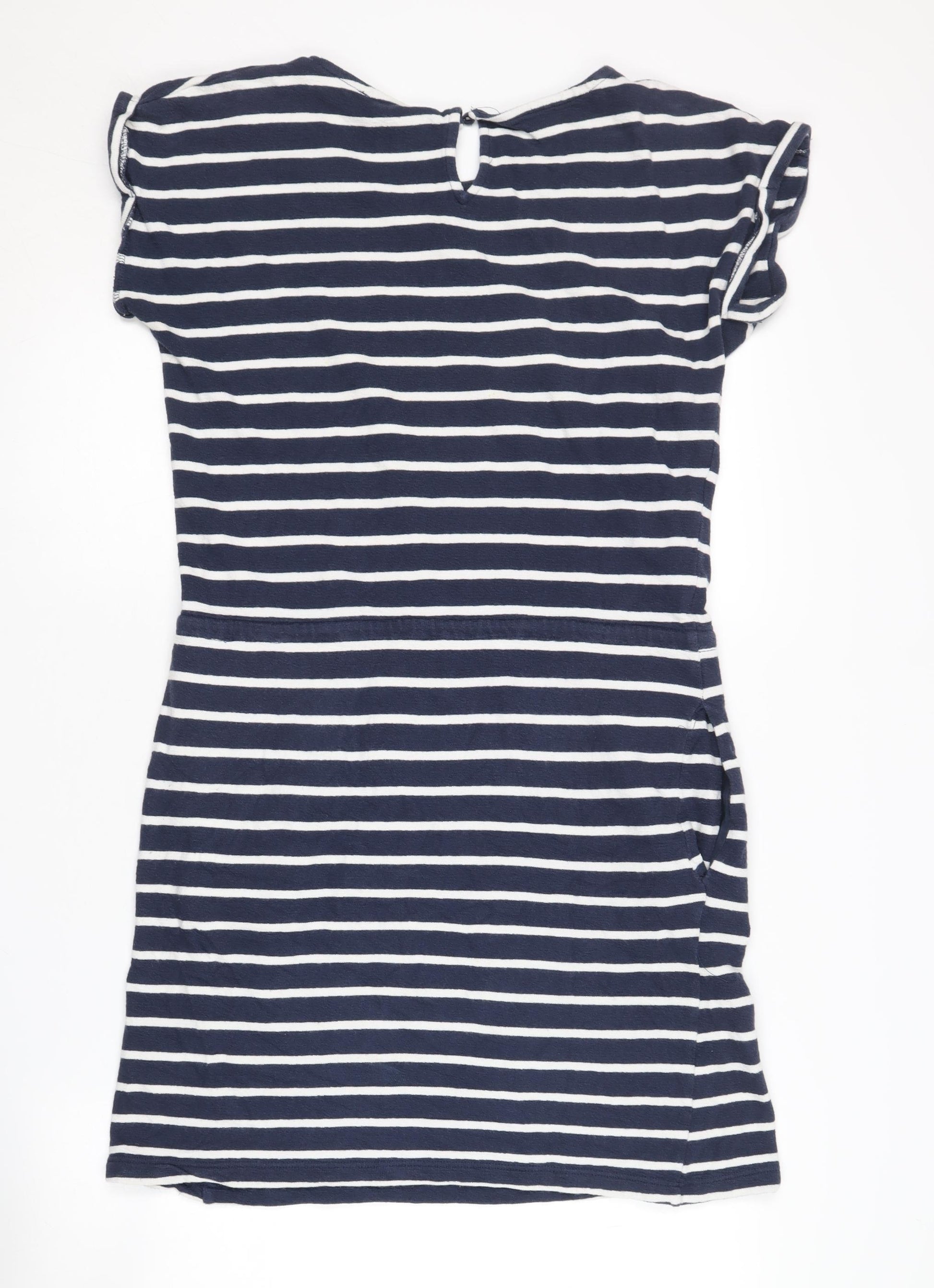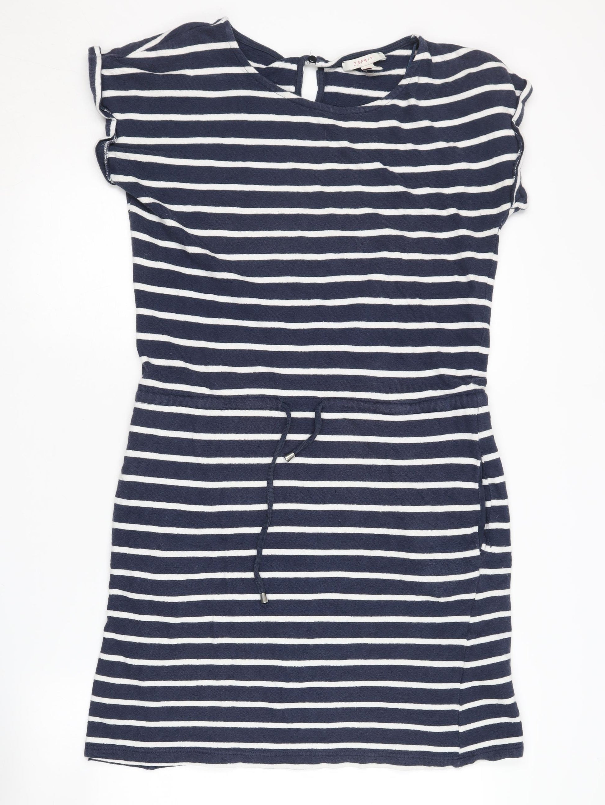 Elevate your summer wardrobe with this Esprit Women’s T-Shirt Dress, perfect for casual outings or a relaxed day at the beach. Designed with a nautical theme, it features a classic striped pattern in a versatile multicoloured palette that's ready to complement any accessory. Crafted entirely from breathable cotton jersey, it promises all-day comfort, making it ideal for warm summer days. This knee-length dress showcases a round neckline and chic cap sleeves, accentuating its laid-back vibe. The dress is equipped with a practical drawstring accent that adds a touch of style and function, allowing you to cinch the waist for a flattering silhouette. Its lightweight fabric ensures easy movement, making it a go-to piece for various summer activities. The dress closes with a simple button for added ease and convenience. Machine washable for effortless care, this garment is designed for the modern woman who loves keeping it stylish yet functional. Suitable for casual occasions, whether a day at the park or a weekend getaway, this dress is the perfect addition to your wardrobe.