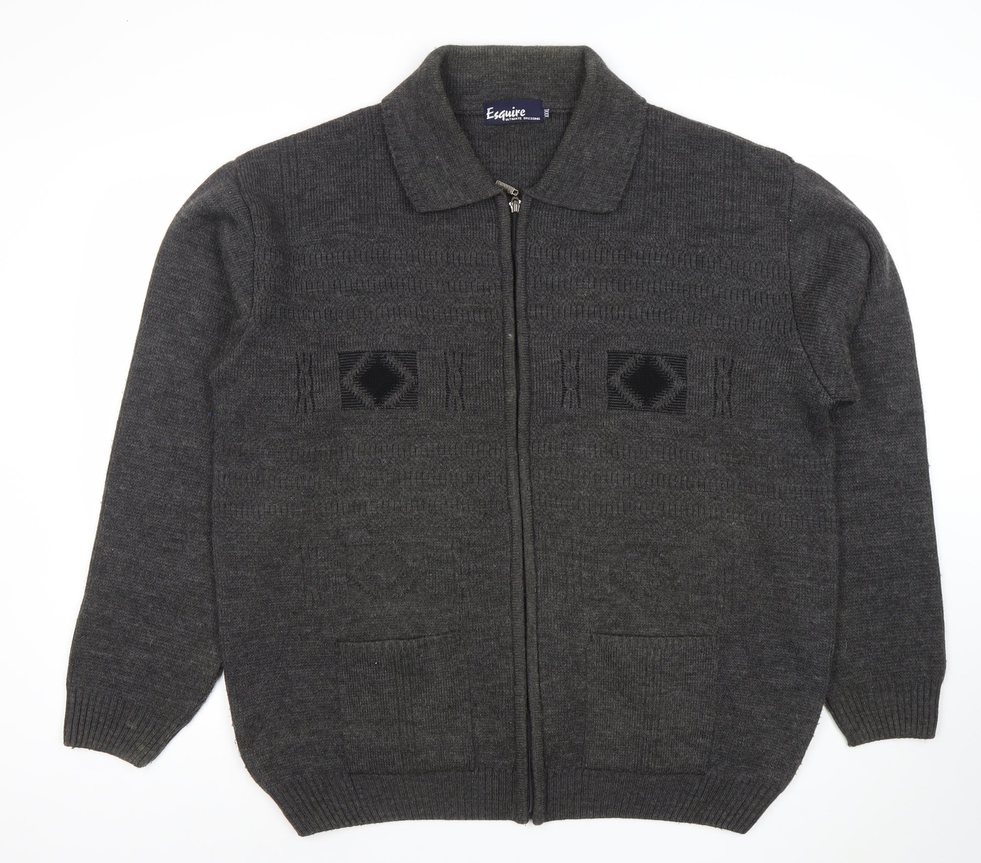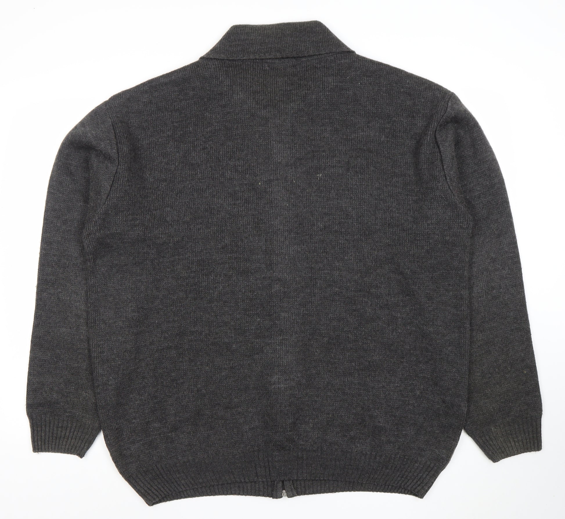 Men's Grey 3XL Full Zip Knit Jumper Collared Classic Style