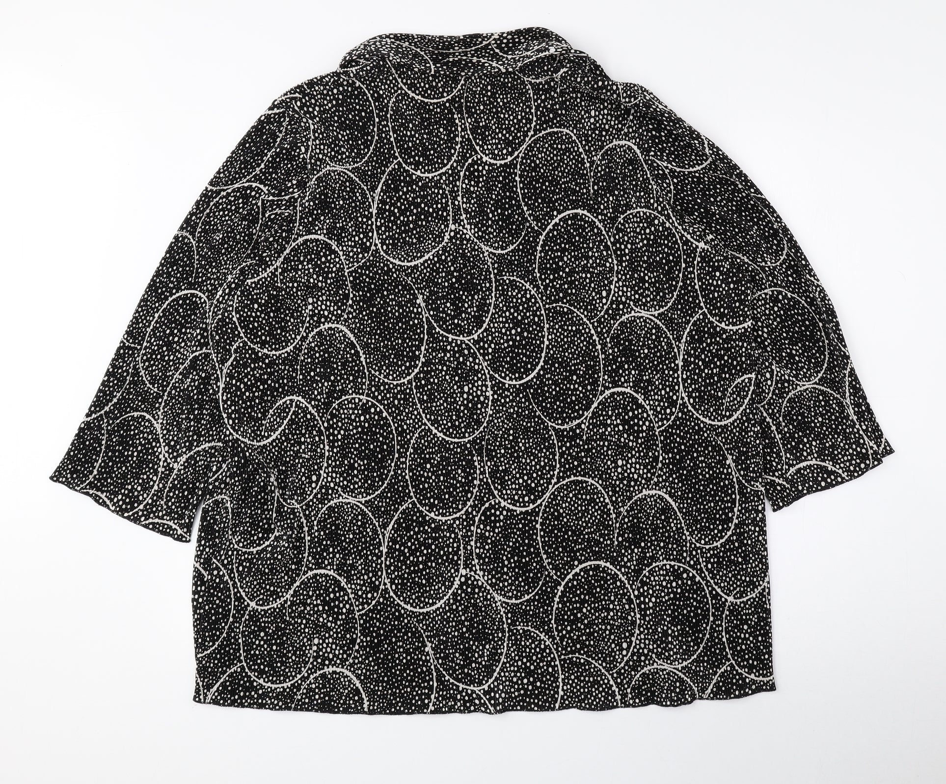 Womens Black Geometric Polyester Basic Button-Up Size 26 Collared