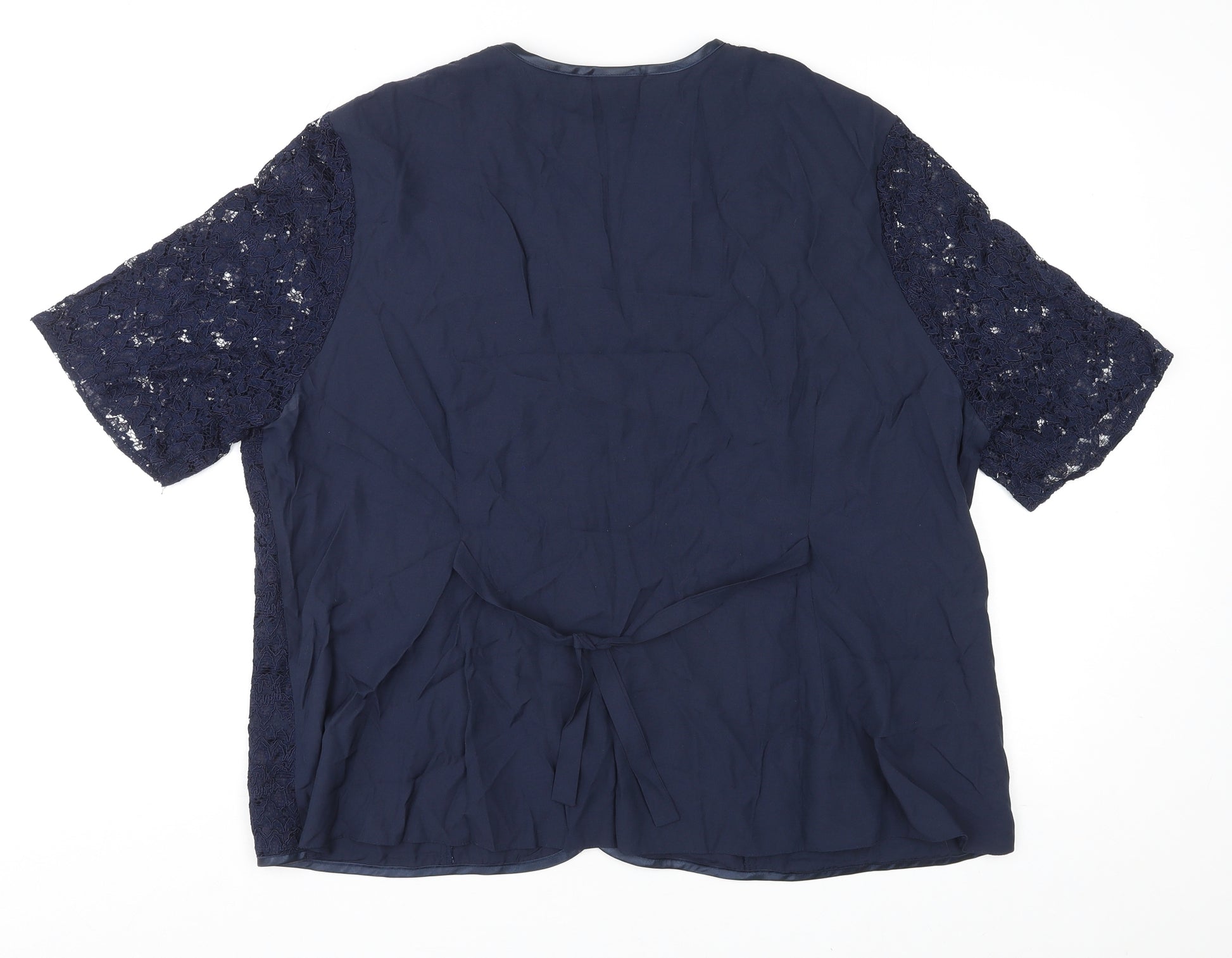 Womens Blue Floral Viscose Basic Button-Up Size 26 V-Neck