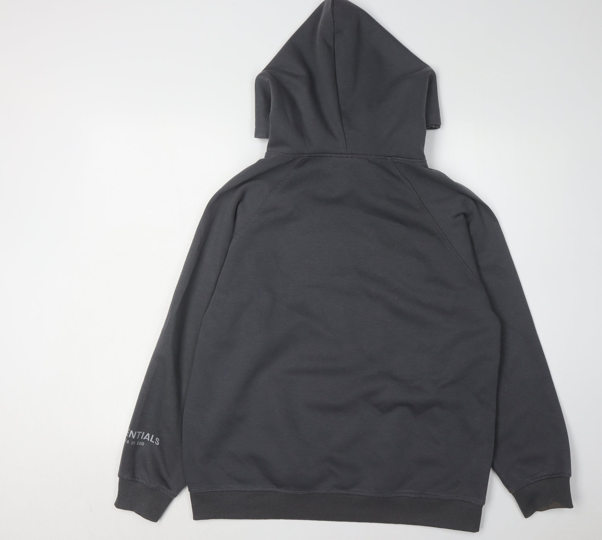 Discover the minimalistic yet stylish appeal of the ESSENTIALS FEAR OF GOD Men's Hoodie in classic black. Designed for comfort and versatility, this pullover hoodie is crafted from high-quality jersey fabric, ensuring a soft and cosy fit. Its regular fit and long sleeves offer a relaxed feel, making it perfect for casual outings or relaxing indoors. Featuring a hooded design with a practical drawstring closure, this hoodie provides added warmth and adjustable comfort. The iconic ESSENTIALS FEAR OF GOD logo accentuates the chest, adding a touch of brand appeal. With convenient pockets, you can keep your essentials close at hand. Made from 100% cotton, this hoodie is not only comfortable but also machine washable, promising easy maintenance and a long-lasting wear. The subtle crew neck and absence of patterns make it a versatile piece in any wardrobe. Despite minimal signs of wear and slight stains, this hoodie is in very good condition, offering style for seasons to come. Priced to offer value, it’s an excellent addition for those who appreciate quality and brand assurance.