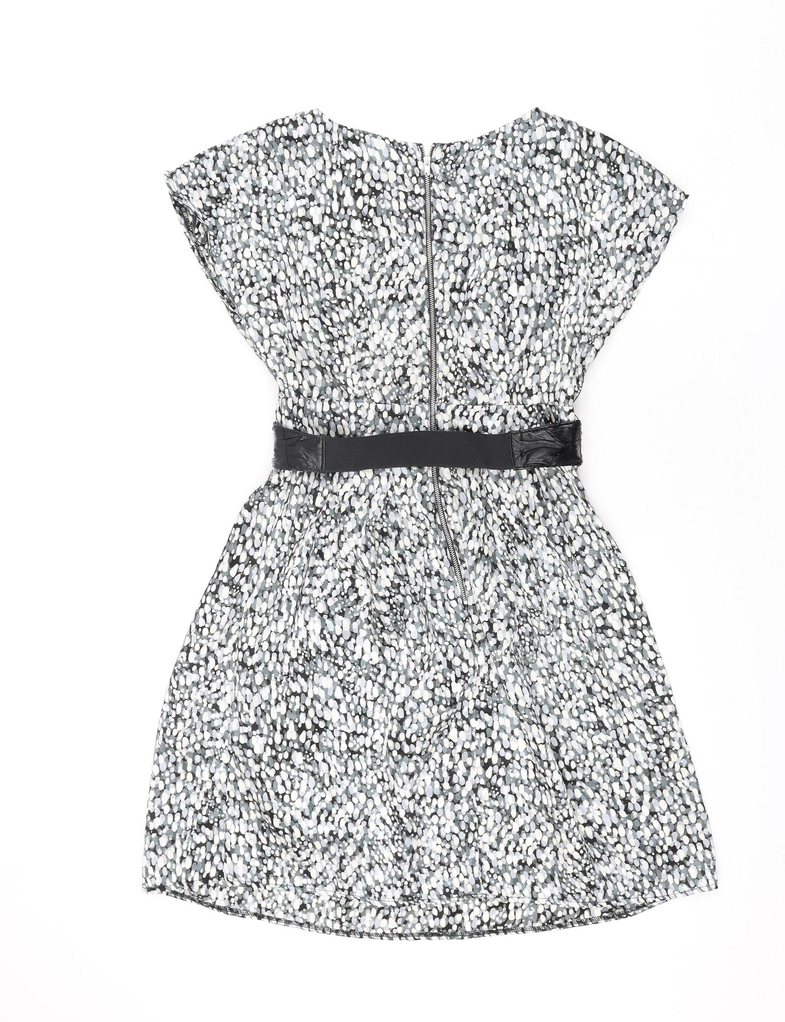 Womens Multicoloured Geometric Polyester Shift Size 12 Round Neck Zip - Belted