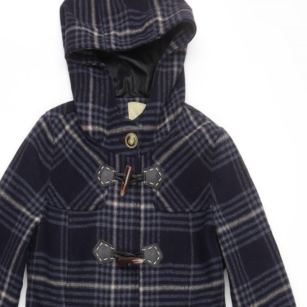 Womens Blue Plaid Pea Coat Coat Size 12 Snap - Hook and Loop