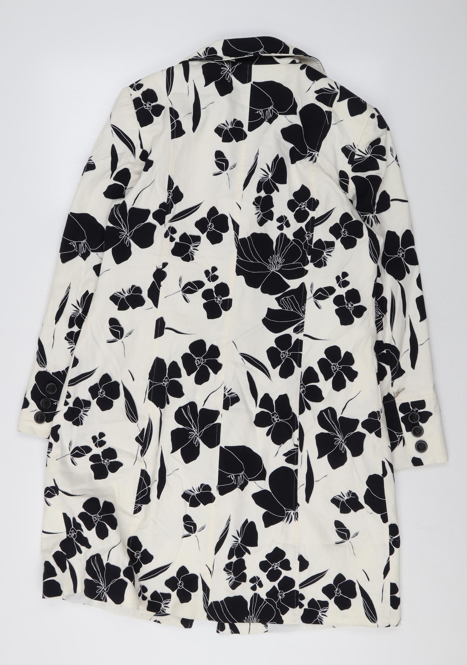 Womens White Floral Overcoat Coat Size 14 Button