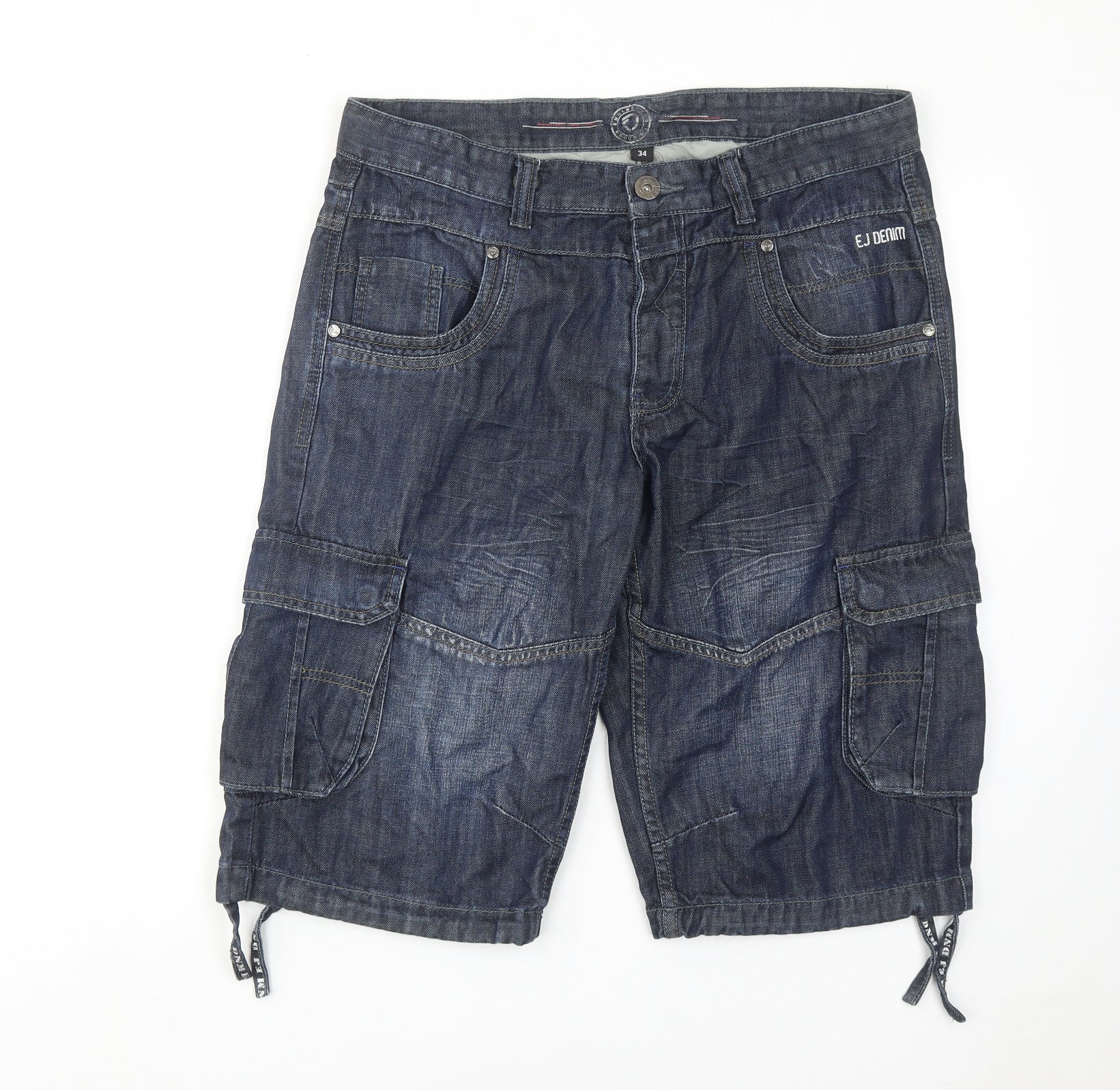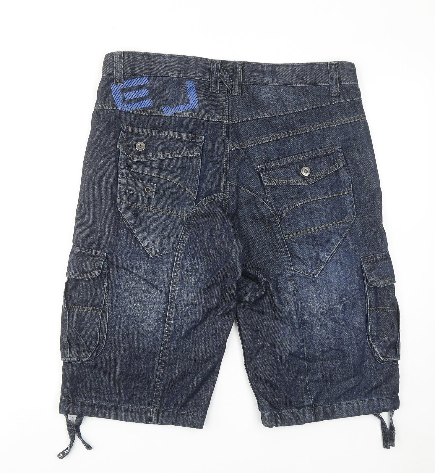 Mens Blue Cotton Bermuda Shorts Size 34 in Regular Button