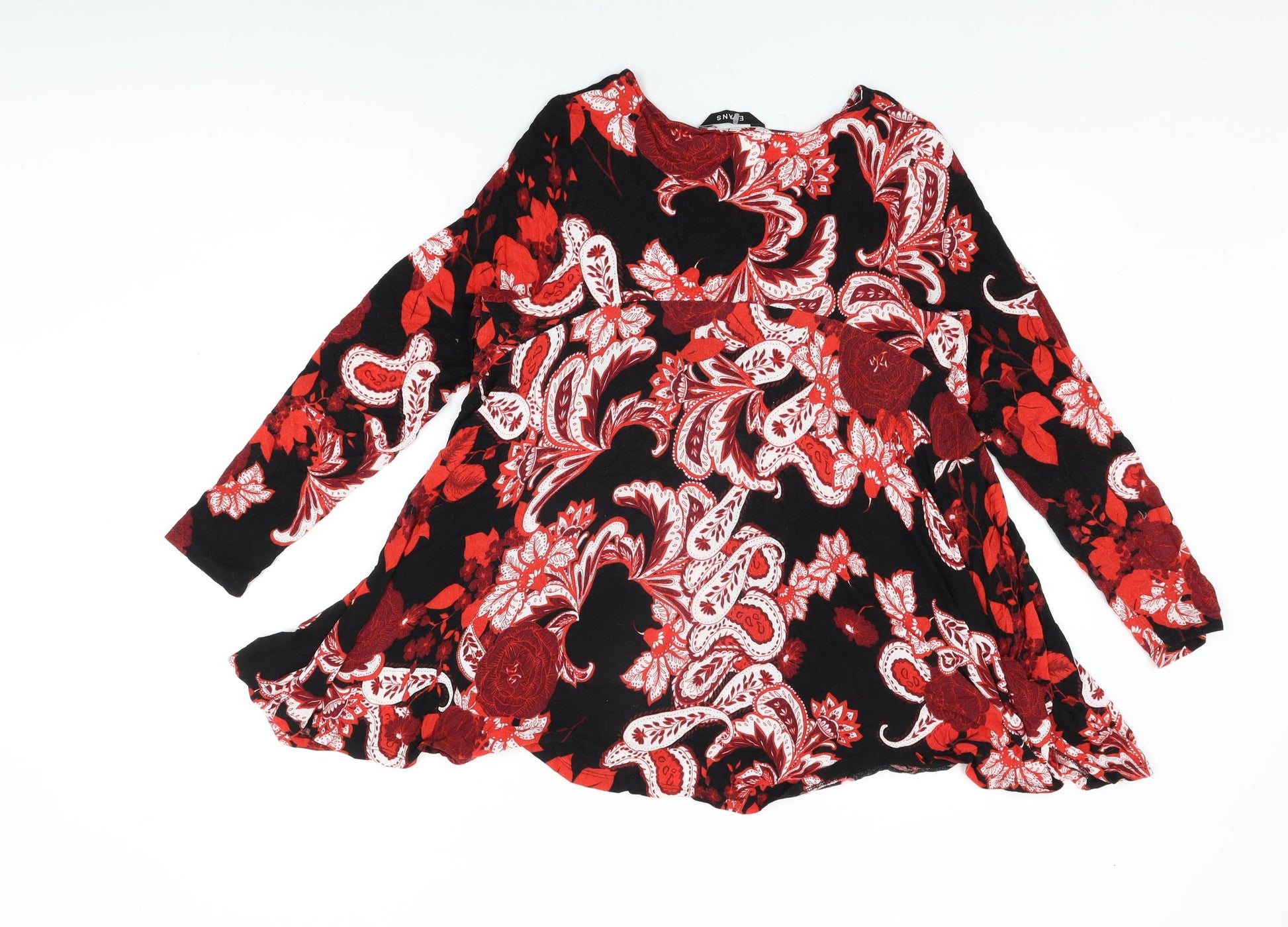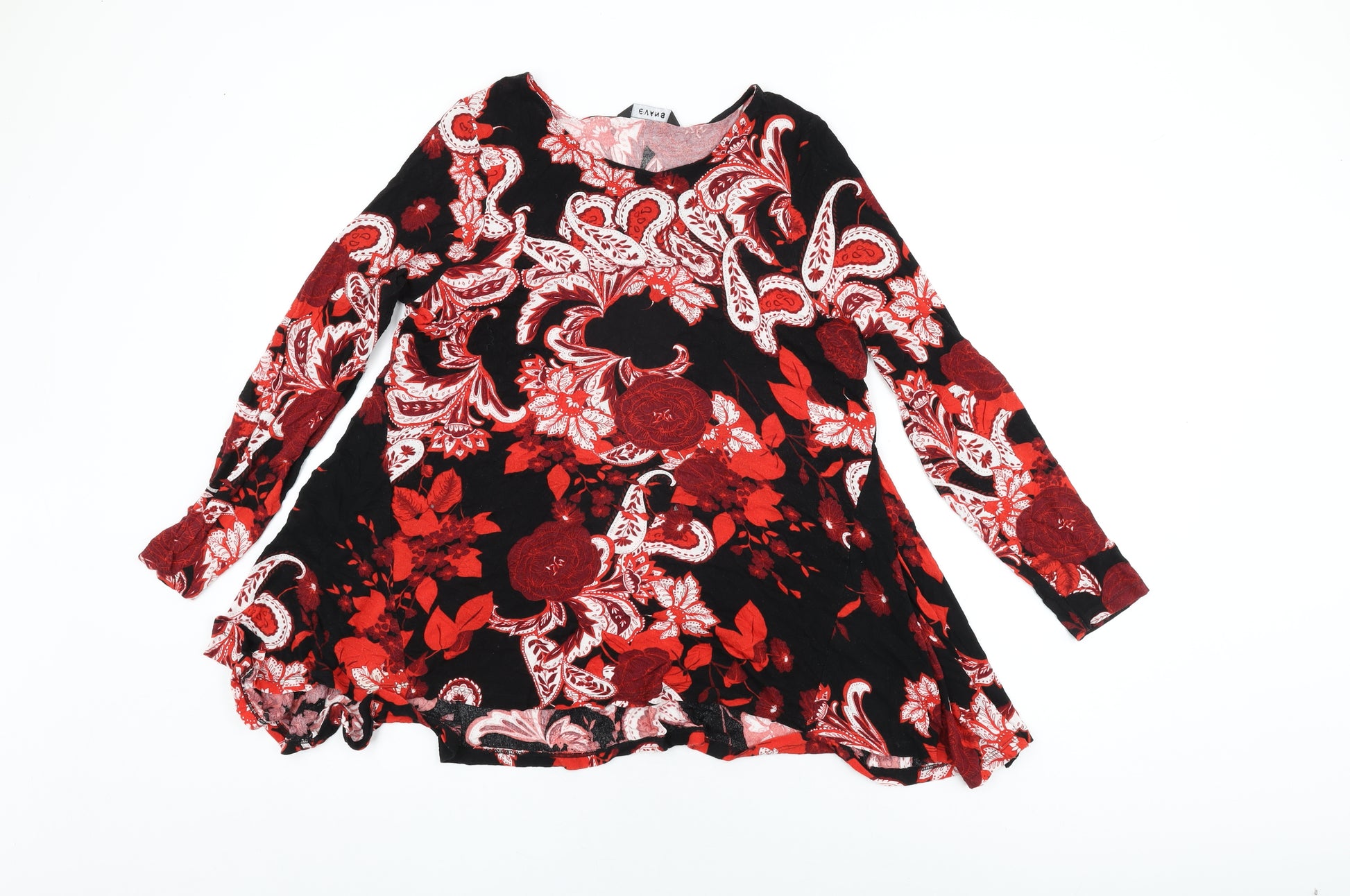 Womens Black Floral Viscose Basic T-Shirt Size 14 Round Neck