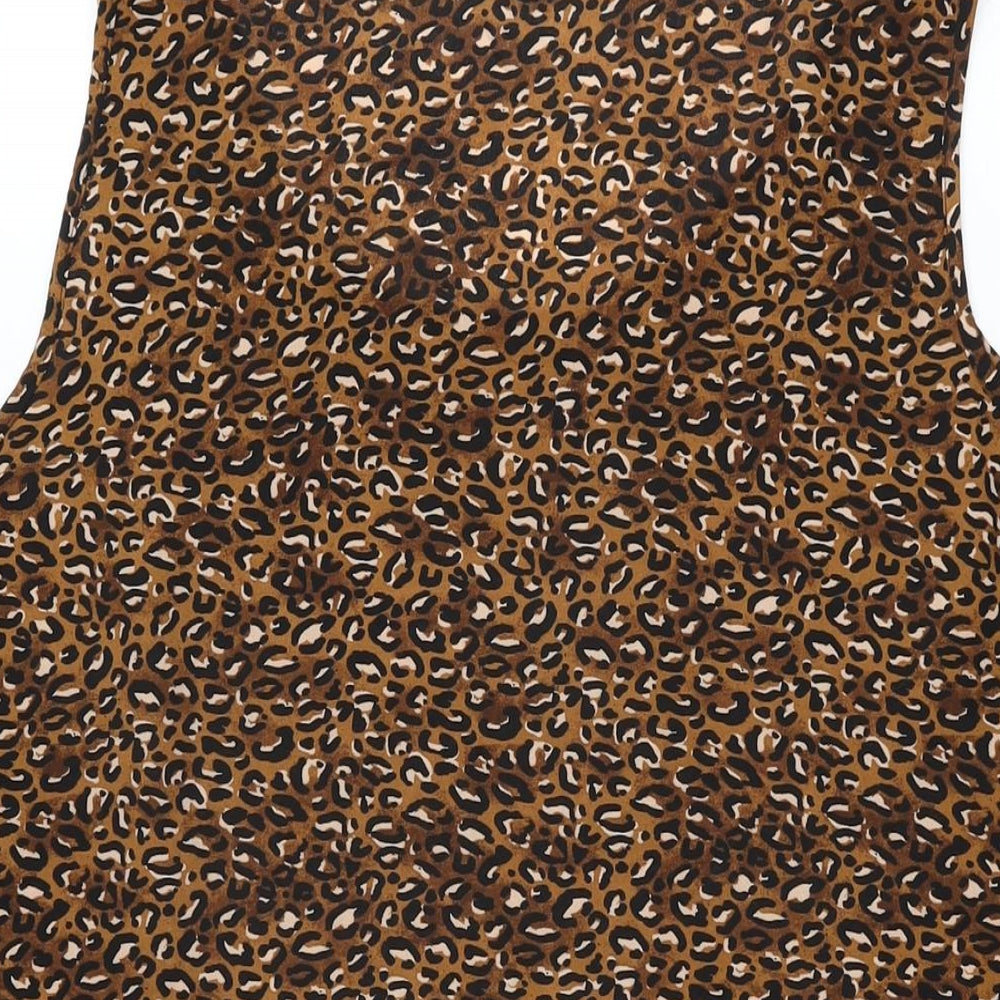 Womens Brown Animal Print Polyester Basic T-Shirt Size 22 Scoop Neck