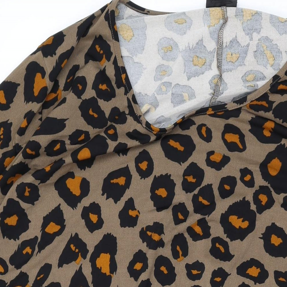 Womens Brown Animal Print Viscose Basic Blouse Size 26 Scoop Neck