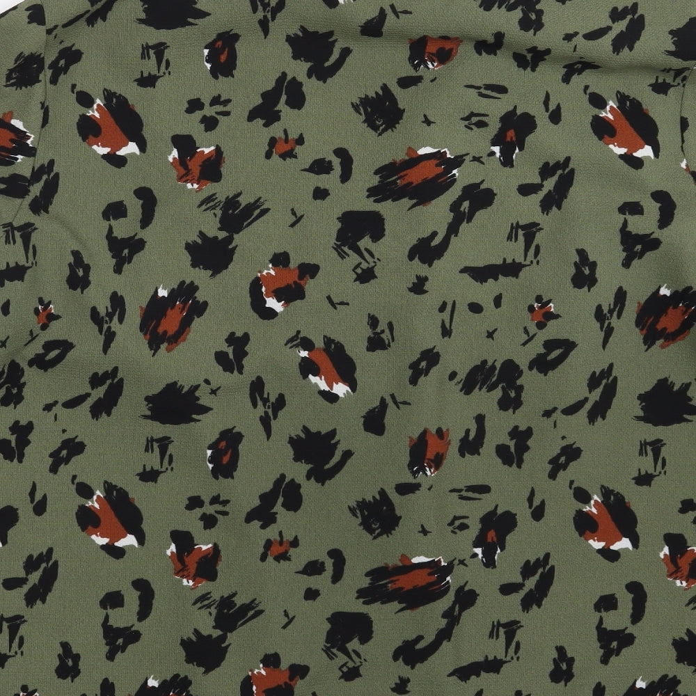 Womens Green Animal Print Basic Button-Up One Size
