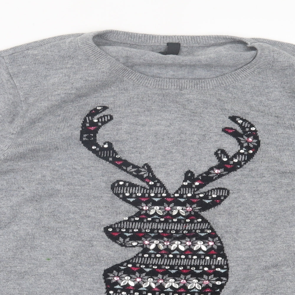 Womens Grey Crew Neck Acrylic Pullover Jumper Size 22