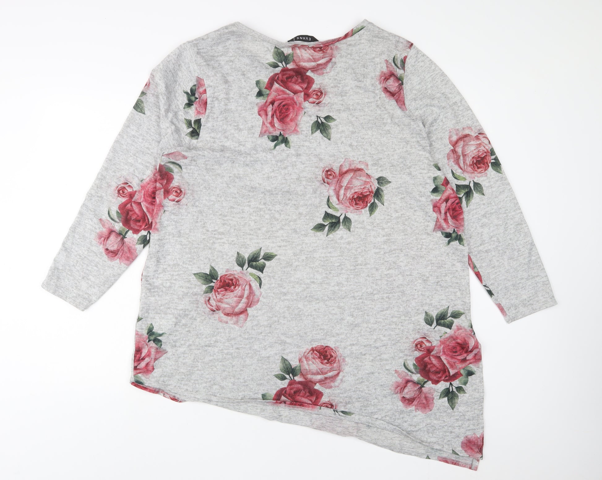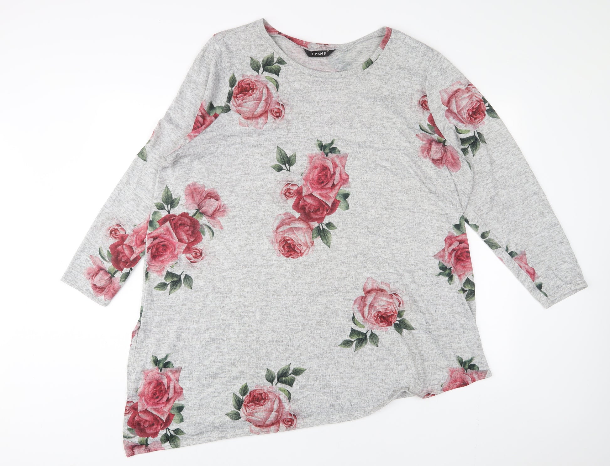 Womens Grey Floral Polyester Basic T-Shirt Size 22 Crew Neck - 22/24