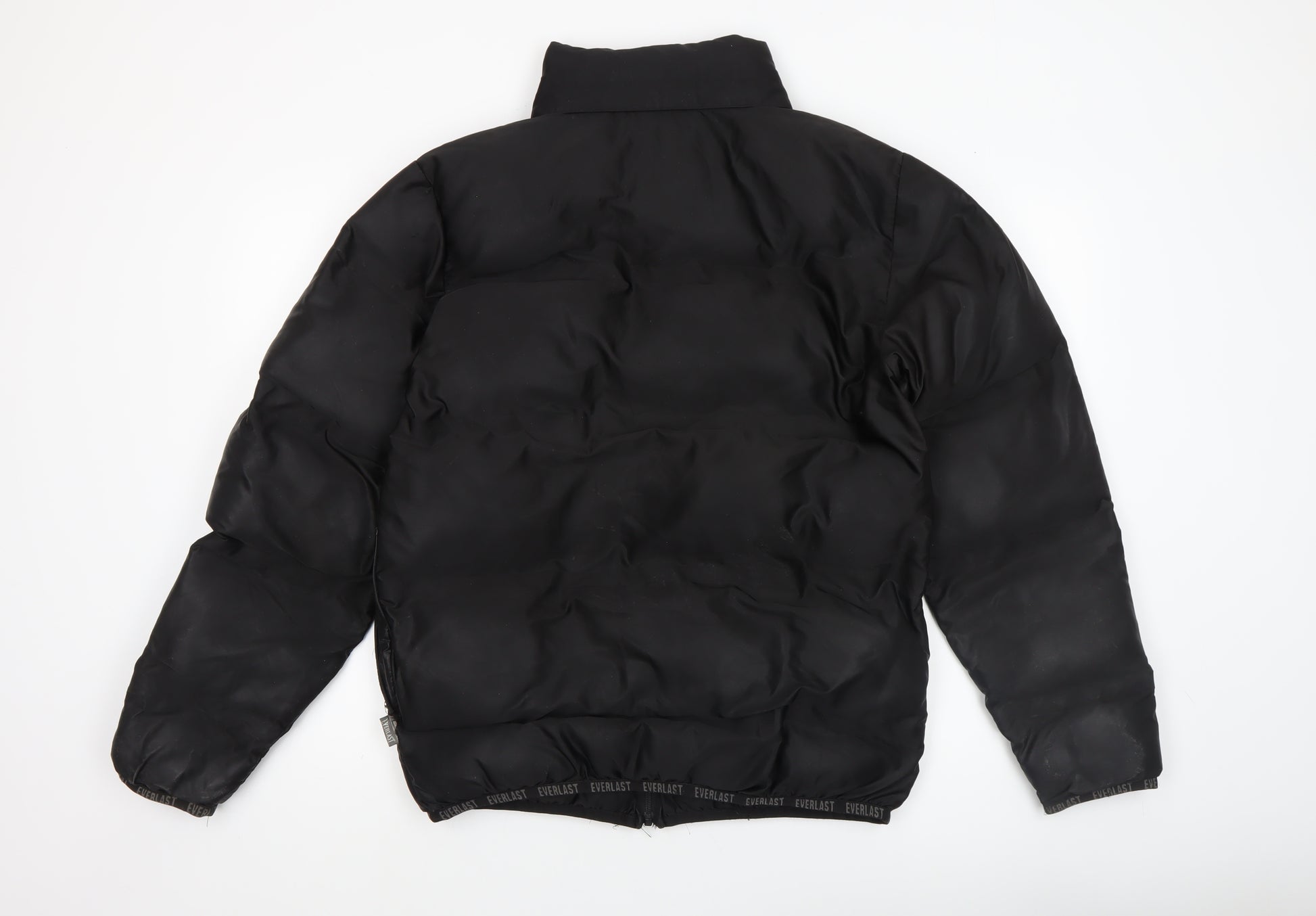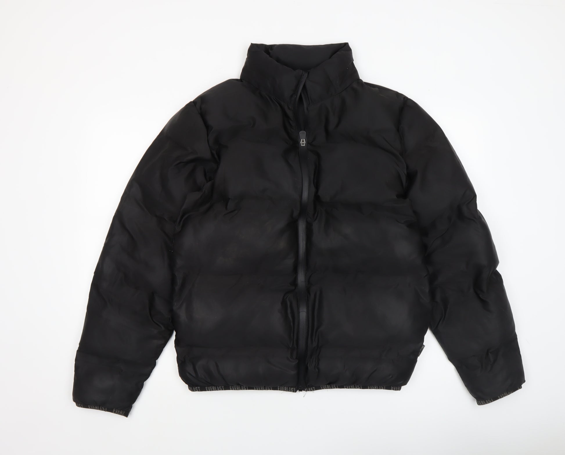 Stay warm and stylish this winter with this Everlast men’s black puffer jacket, designed to deliver both comfort and performance. Made from 100% polyester, this insulated and padded jacket provides superior warmth without feeling heavy, making it ideal for everyday wear or outdoor activities. The smooth microfibre outer shell gives a sleek appearance while helping to block out wind and keep you cosy in cold weather conditions. The jacket is fully lined for added comfort and features a convenient full zip closure, making it easy to put on and take off while ensuring effective heat retention. With practical zipped pockets, you can safely store essentials such as your phone, keys, or wallet during outdoor adventures or daily commutes. The modern stand-up collar adds a sporty edge, providing extra warmth around the neck when needed. Designed in a regular fit and short length, this classic puffer jacket is versatile and perfect for pairing with jeans or joggers for a casual yet polished look. Ideal for gym and training sessions, running, walking, or simply relaxing off-duty, its timeless design ensures it fits seamlessly into any wardrobe. The black colourway makes it easy to coordinate with any outfit, while subtle Everlast branding lends an authentic athletic touch. Machine washable for easy care, this durable piece is built to last. In excellent used condition with only light signs of wear and no noticeable flaws, this Everlast puffer jacket offers fantastic quality and comfort at a great price. Perfect for colder months, it’s a must-have staple jacket for any active man seeking dependable warmth and sport-inspired style.