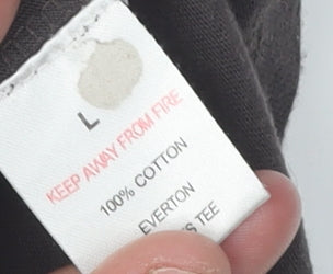 Get ready to showcase your Everton pride with this stylish men's T-shirt. Crafted from 100% cotton, this black T-shirt offers both comfort and style. The bold graphic print on the front proudly displays 'We Are Giants', making it an ideal choice for fans who want to make a statement. The short sleeves and crew neckline add to the classic casual look, perfect for summer outings or casual gatherings. Designed for men, this T-shirt is a regular fit in size L, ensuring comfort without compromising on style. The jersey fabric type further enhances the comfort level, allowing for breathability and ease of movement. Although it is slightly worn, it is still in excellent condition, offering a unique opportunity to own an Everton piece at a great price. Whether you're heading to a game or just relaxing with friends, this T-shirt makes a versatile addition to any wardrobe. Pair it with jeans or shorts for a relaxed, sporty look that shows off your love for Everton. Machine washable for easy care, it's a hassle-free, must-have item for any fan.