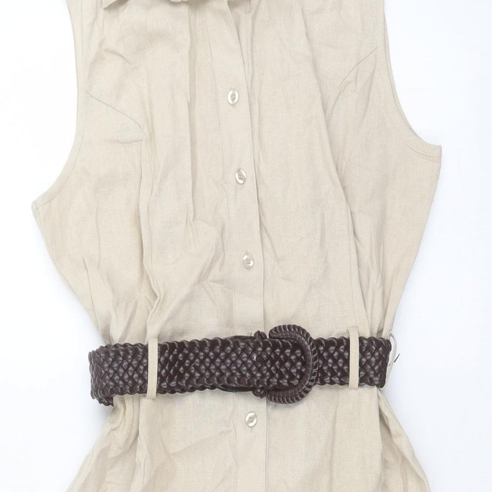 Womens Beige Linen Shirt Dress Size 16 Collared Button