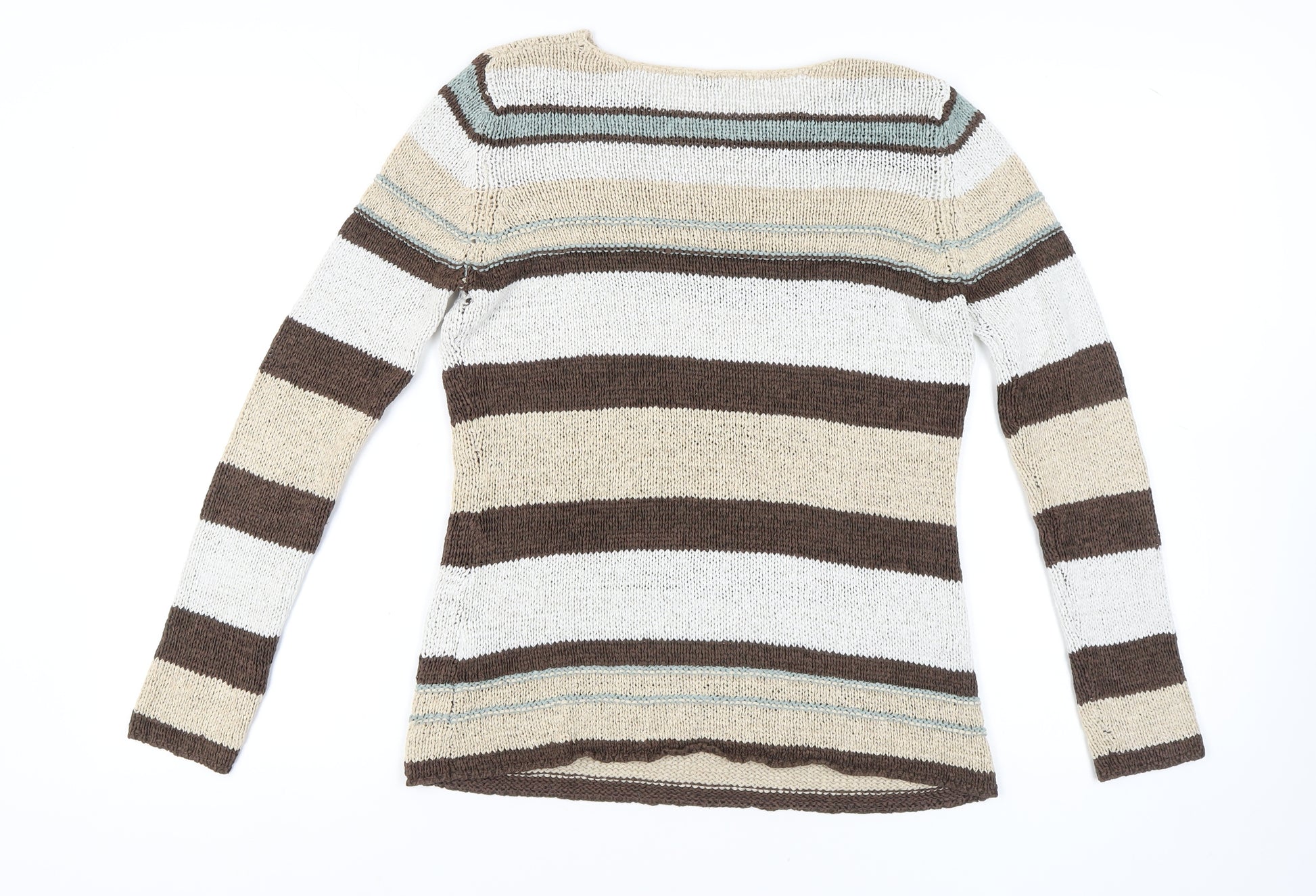 Women's Brown Beige Striped Pullover Jumper Size 14