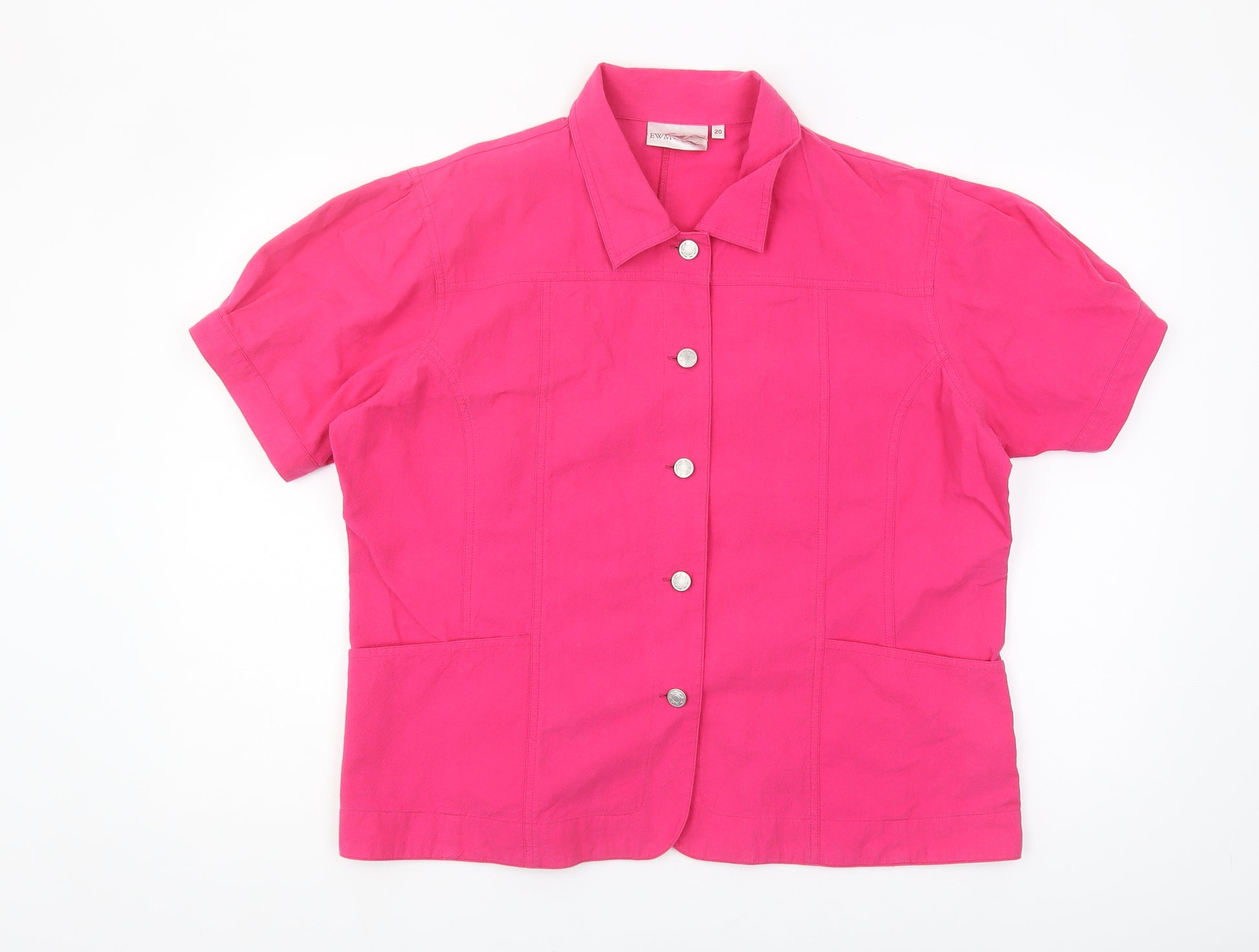 Add a vibrant touch to your wardrobe with this EWM Classics Women's Pink Button-Up Shirt. Crafted from 100% cotton, this shirt promises a comfortable and breathable experience, perfect for the warmer months of spring and summer. The short sleeves and collared neckline add a touch of classic elegance, making it suitable for both casual outings and semi-formal occasions. With its solid pink colour, this shirt can be easily paired with various bottoms, allowing you to create versatile looks for any event. The regular fit ensures a flattering silhouette, enhancing your style effortlessly. Despite being pre-owned, this shirt is in excellent condition with no visible wear, offering you a well-maintained piece at an affordable price. Make this vibrant button-up shirt a staple in your wardrobe and stand out with its bold and lively hue.